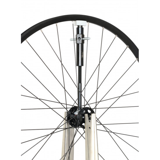 - 1. Place the tool at the location of the height impact to be removed (depression in the rim) between the hub body and the inside of the rim.