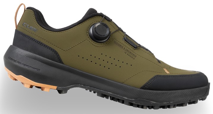The CUBE LOXIA PRO TM shoe combines the grip and flexibility of an outdoor running shoe with the support needed for efficient and comfortable pedalling, reducing fatigue. It's ideal for many types of riding including touring, gravel, enduro mountain biking and all kinds of e-biking. An internal nylon shank provides the stiffness needed for pedalling, whilst a shock-absorbent EVA midsole and newly developed, super-sticky A-TRACTION rubber compound give excellent traction for flat pedals and good comfort and flexibility for off-bike hiking. There's a reinforced toe box for protection, and an NF Ergonomics insole provides the best possible cushioning and pressure distribution. The dial closure means it's also quick and easy to put on and take off.