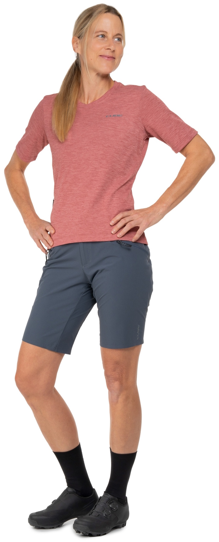 The CUBE GRAVEL Shorts are made from durable performance fabric that offers both comfort and long-lasting wear. Four pockets provide practical storage for small items, while the elastic waistband insert ensures a perfect fit and supports freedom of movement. Ideal for women riders looking for functional and comfortable gear for their gravel adventures.