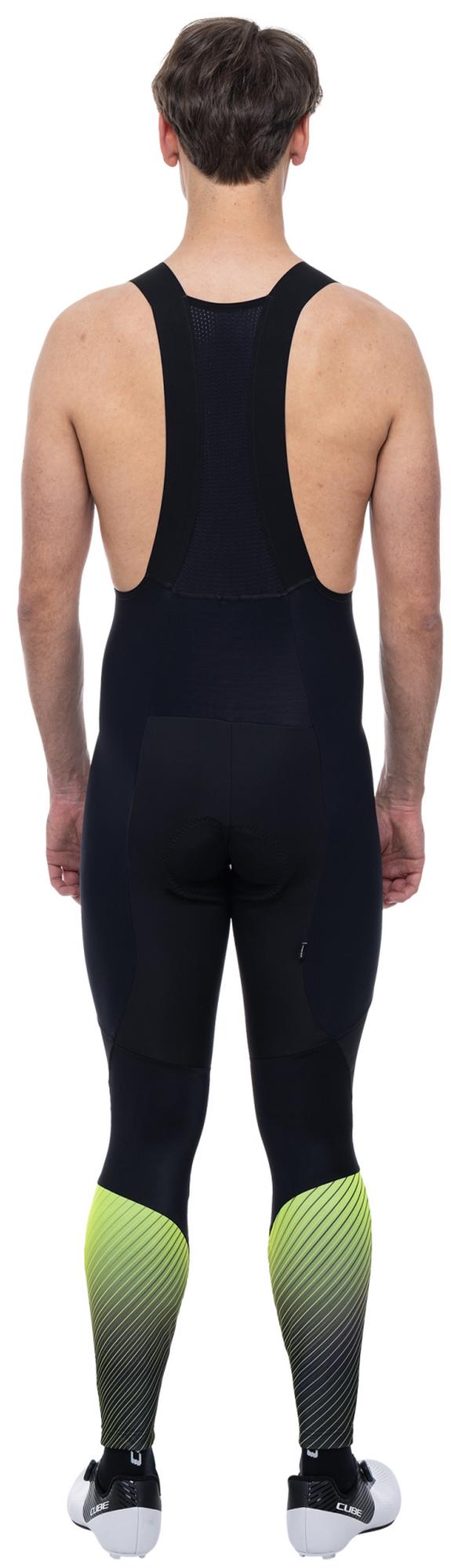 All the features of our standard road/xc bib shorts but in a safety-first version. Wind-proof at the front and constructed from warming, quick-drying fabric, these shorts are a prime example of form and function in synergy. The large neon print combined with reflective details add visibility for when you're negotiating road traffic and riding in low-light conditions. Soft shoulder straps mould to the body while the rear mesh section is highly effective at wicking sweat away from the skin. Stay comfortable during long days in the saddle with the exclusive cube team pad chamois, made in italy.