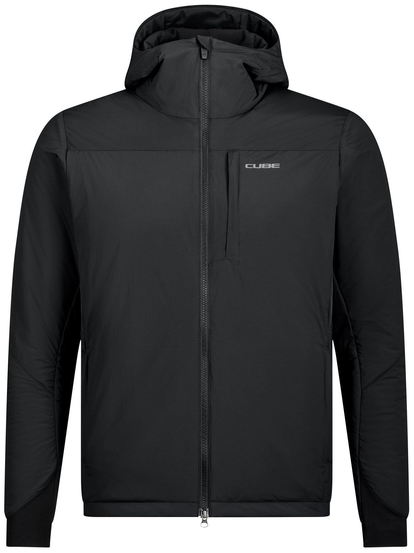 Whether it's a cool morning or a chilly summit breeze – the CUBE Hybrid Jacket keeps you warm without restricting your movement. Lightweight insulation reliably protects your core, while breathable stretch panels allow full freedom of motion on the bike. Two zipped side pockets and a chest pocket provide easy-access storage for your essentials. The athletic fit sits close to the body for comfort, and reflective details boost your visibility when you're still out as daylight fades. A jacket that elevates every ride.