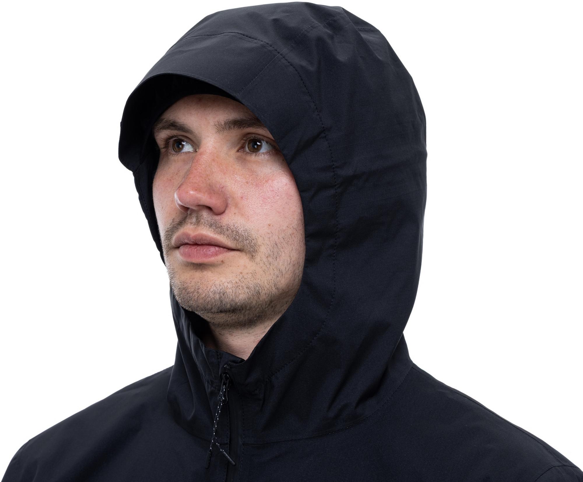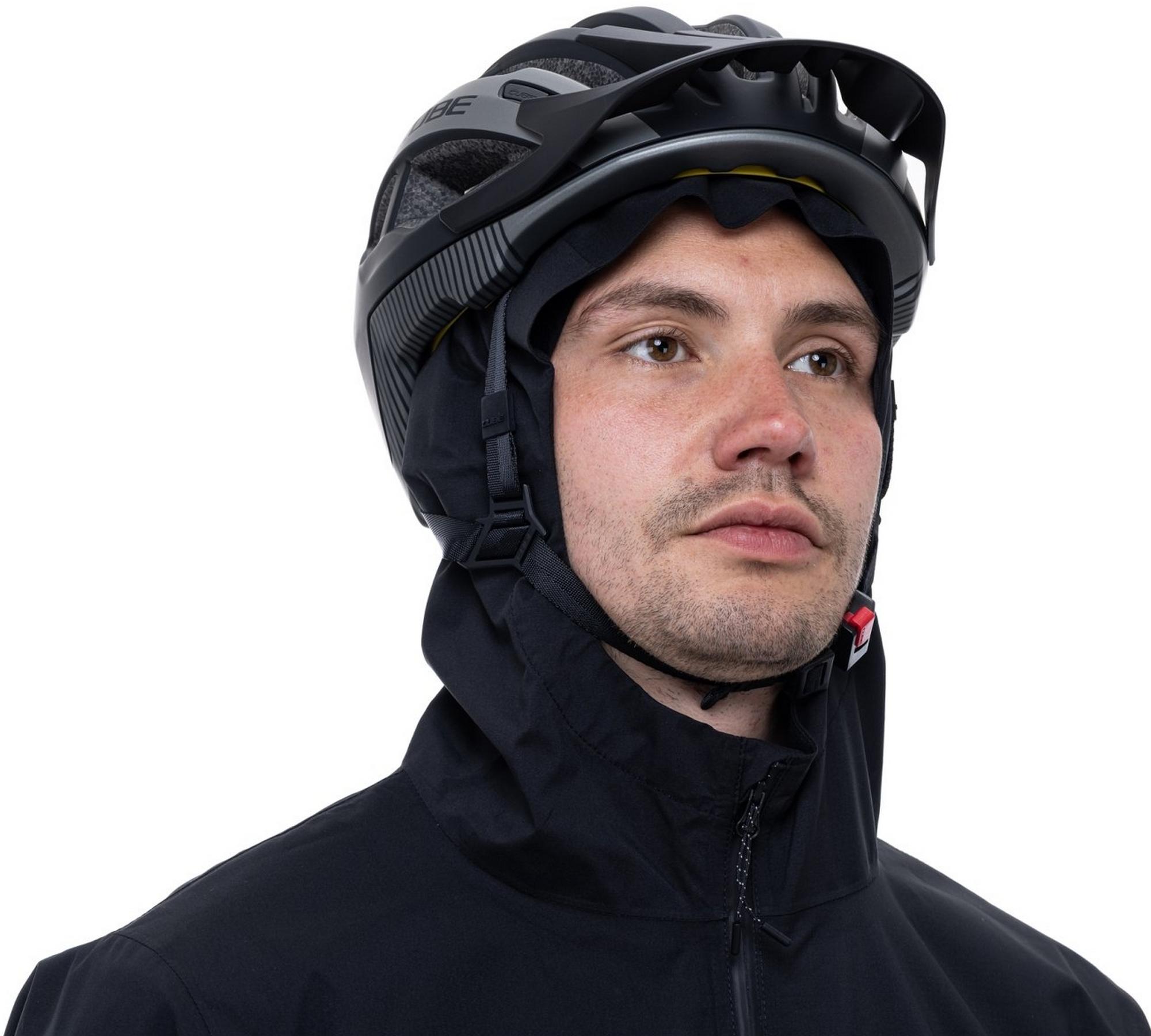 - Adjustable peaked hood can be worn underneath the helmet