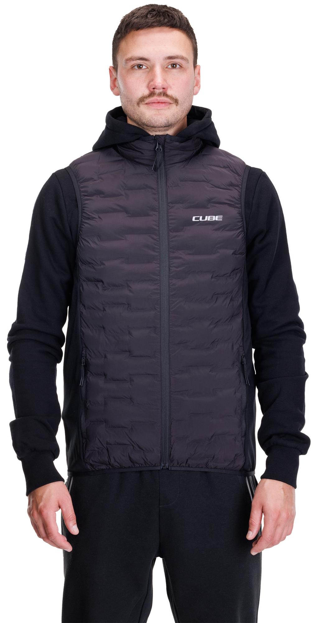The cube padded vest is perfect worn over a long-sleeve jersey for extra warmth without feeling restricted. With its comfortable yet sporty cut, it not only looks great but also has a handy hood to keep your ears and head warm during snack breaks or post-ride. Full climate control comes courtesy of the full-length zip.