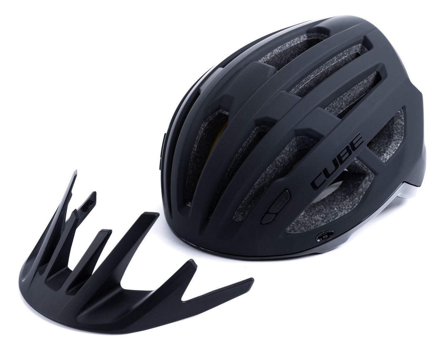 The new CUBE Helmet OFFPATH is the more compact successor to our PATHOS mtb race helmet. Double in-mould construction, 19 large air vents and improved ventilation channels let you keep a cool head on the hottest of trails! Maximum comfort and a perfect fit are courtesy of our proprietary Natural Fit system developed in-house. The SNAP 360 Fit System with MIPS integration adjusts with one hand, and because we know all heads are different, we also made the height adjustable. Different padding thickness are included so you can fine-tune the fit and comfort even further. Removable, washable pads are just how we roll, and the visor is removable too. Matte or glossy finish? It's a matter of taste! The integrated light and X-Lock mounting system are all rolled in as standard.