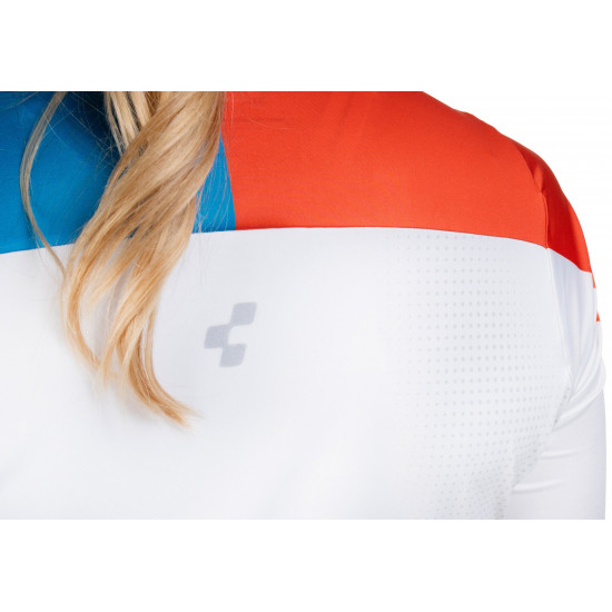 Maximum performance, every mile: The ROAD/XC Womens Jersey features an athletic cut that fits perfectly to your riding position and moves with you effortlessly. The durable, quick-drying fabric keeps you comfortably dry – even during intense efforts. A full-length front zip allows for flexible ventilation, while a small water resistant zip pocket at the back keeps your essentials safe and secure. An elastic silicone gripper at the hem prevents the jersey from riding up, and reflective details enhance visibility in low-light conditions.