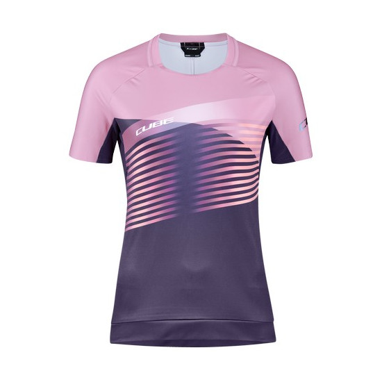 - Cycling jersey Cube Teamline WS Round Neck S/S violet'n'rose