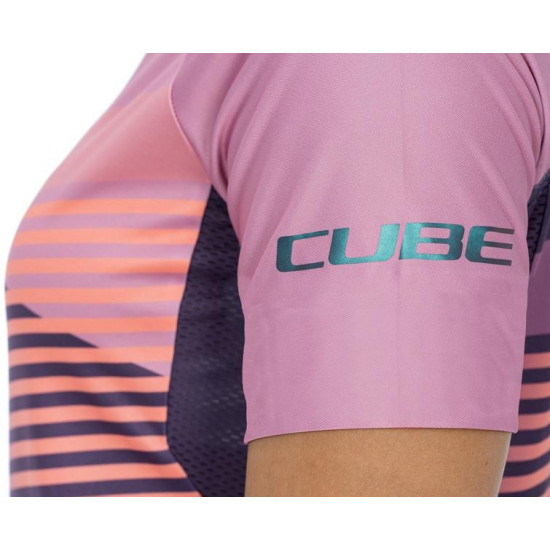Cycling jersey Cube Teamline WS Round Neck S/S violet'n'rose