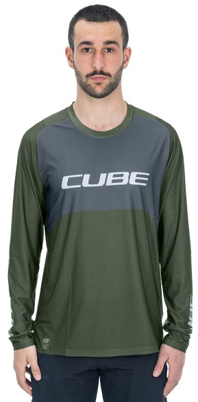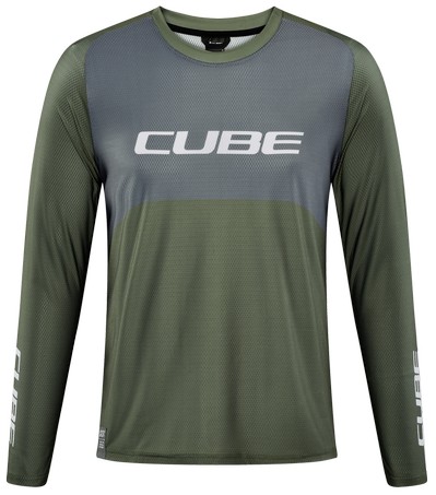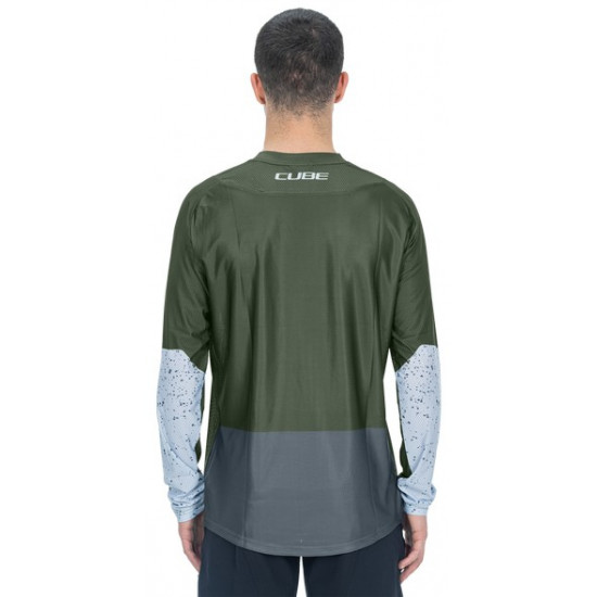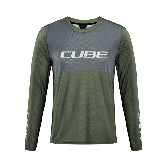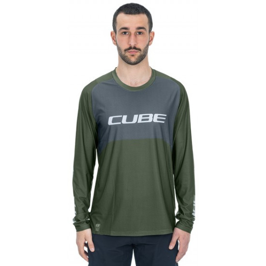 - Cycling jersey Cube Vertex Round Neck TM L/S olive'n'grey
