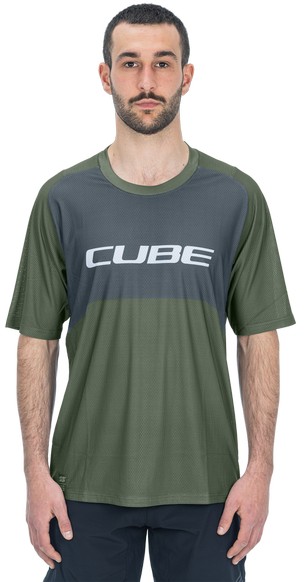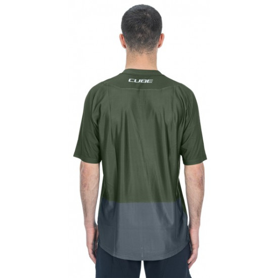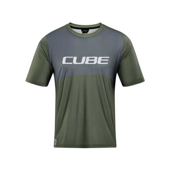- Cycling jersey Cube Vertex Round Neck TM S/S olive'n'grey