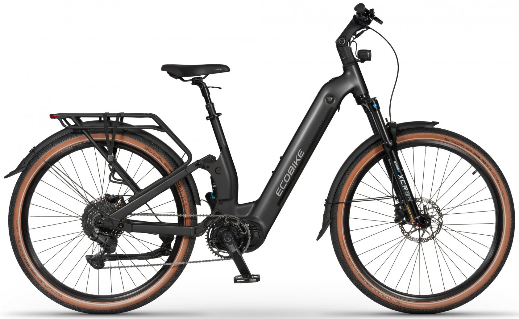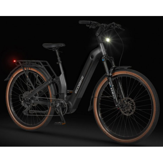 Ecobike Flex is a brand-new take on the electric bike, combining a convenient low-step frame with full suspension. Its the perfect choice for riders who value easy mounting, stability, and maximum riding comfort – whether youre commuting in the city or tackling more demanding trails.