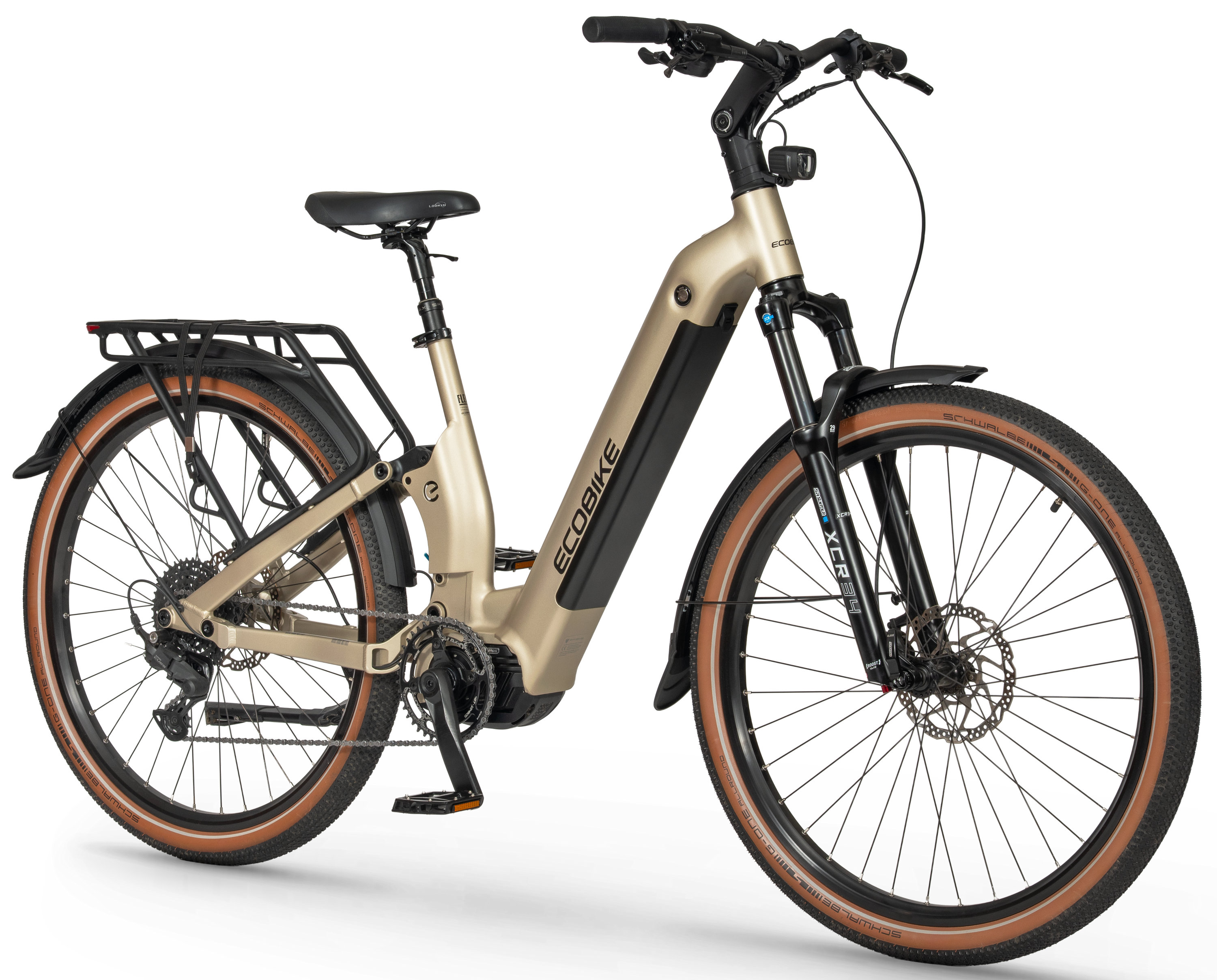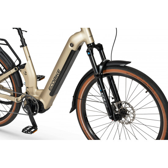 Ecobike Flex is a brand-new take on the electric bike, combining a convenient low-step frame with full suspension. Its the perfect choice for riders who value easy mounting, stability, and maximum riding comfort – whether youre commuting in the city or tackling more demanding trails.