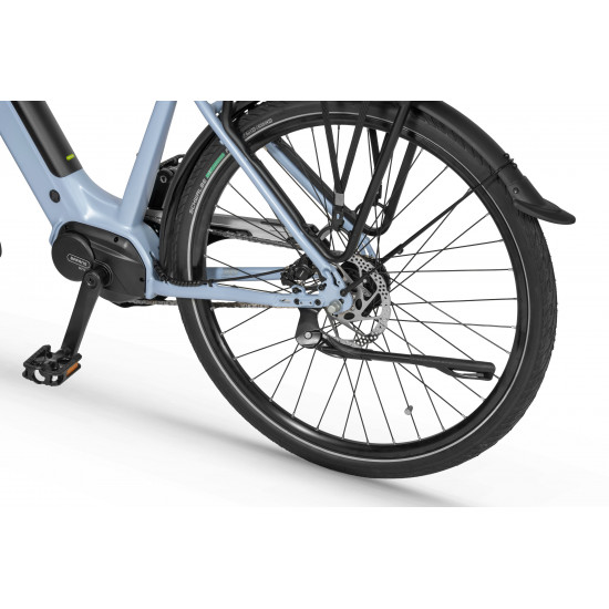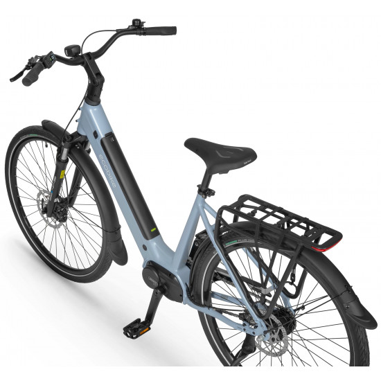The frame geometry was created with urban routes in mind – comfortable, stable, and safe. The reinforced down tube adds extra stiffness, while the clean cockpit system keeps all cables neatly hidden for a sleek and tidy look.