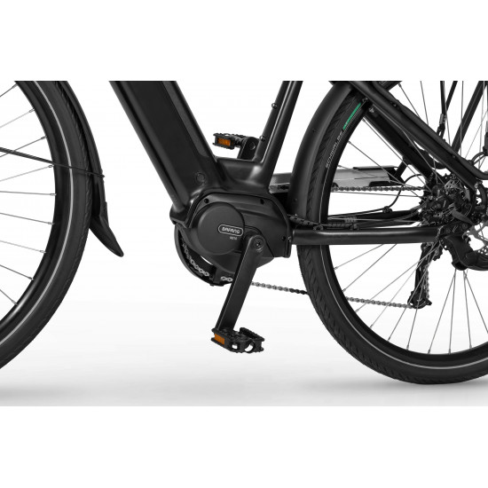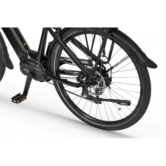 The Ecobike LX 100 is equipped with an intelligent assist system featuring the Bafang M210 motor, which operates quietly and efficiently, delivering power and torque up to 80 Nm. The frame geometry allows for a comfortable riding position, and its universal design appeals to various tastes. The MIK system on the rear rack lets you securely mount panniers.