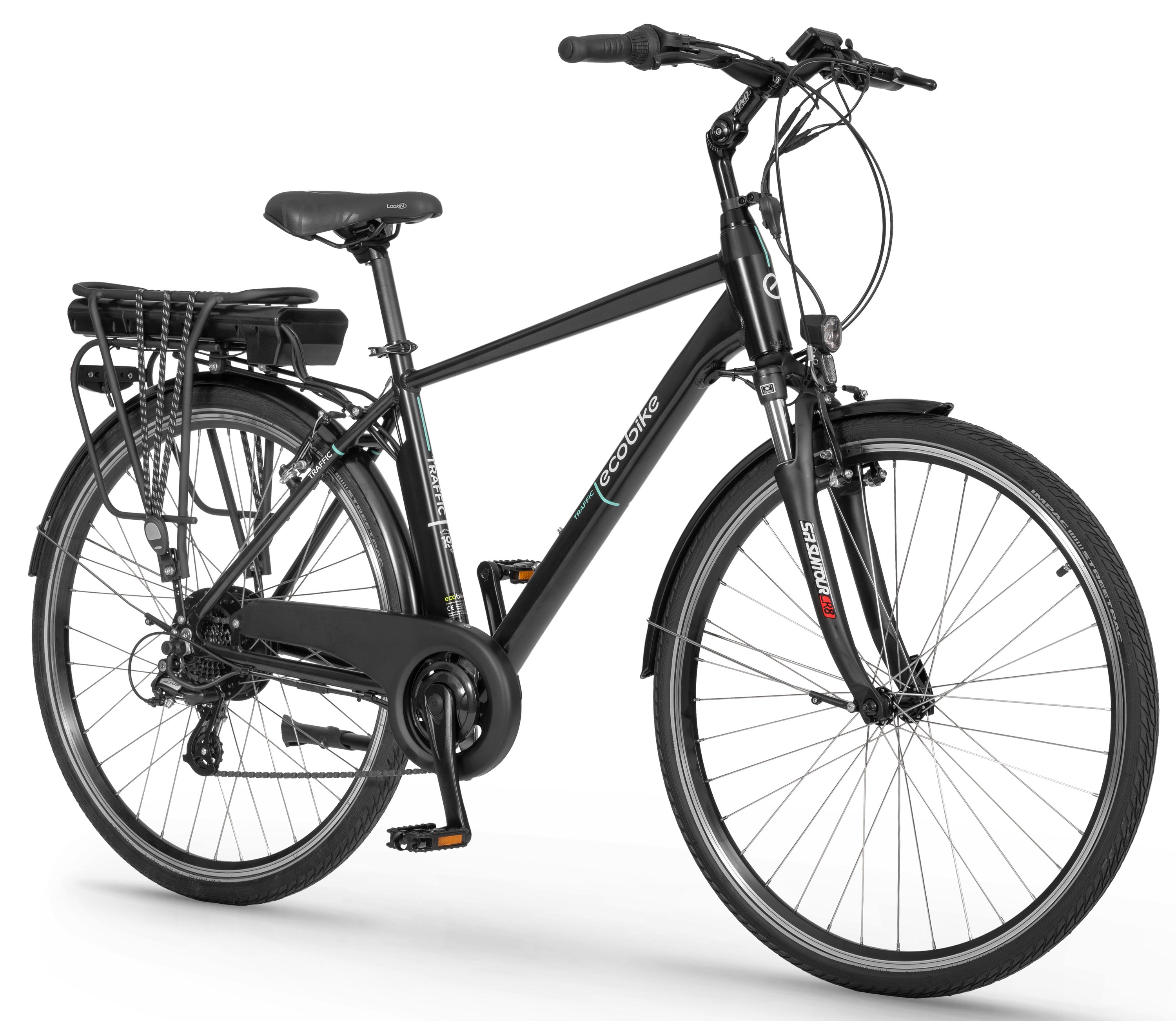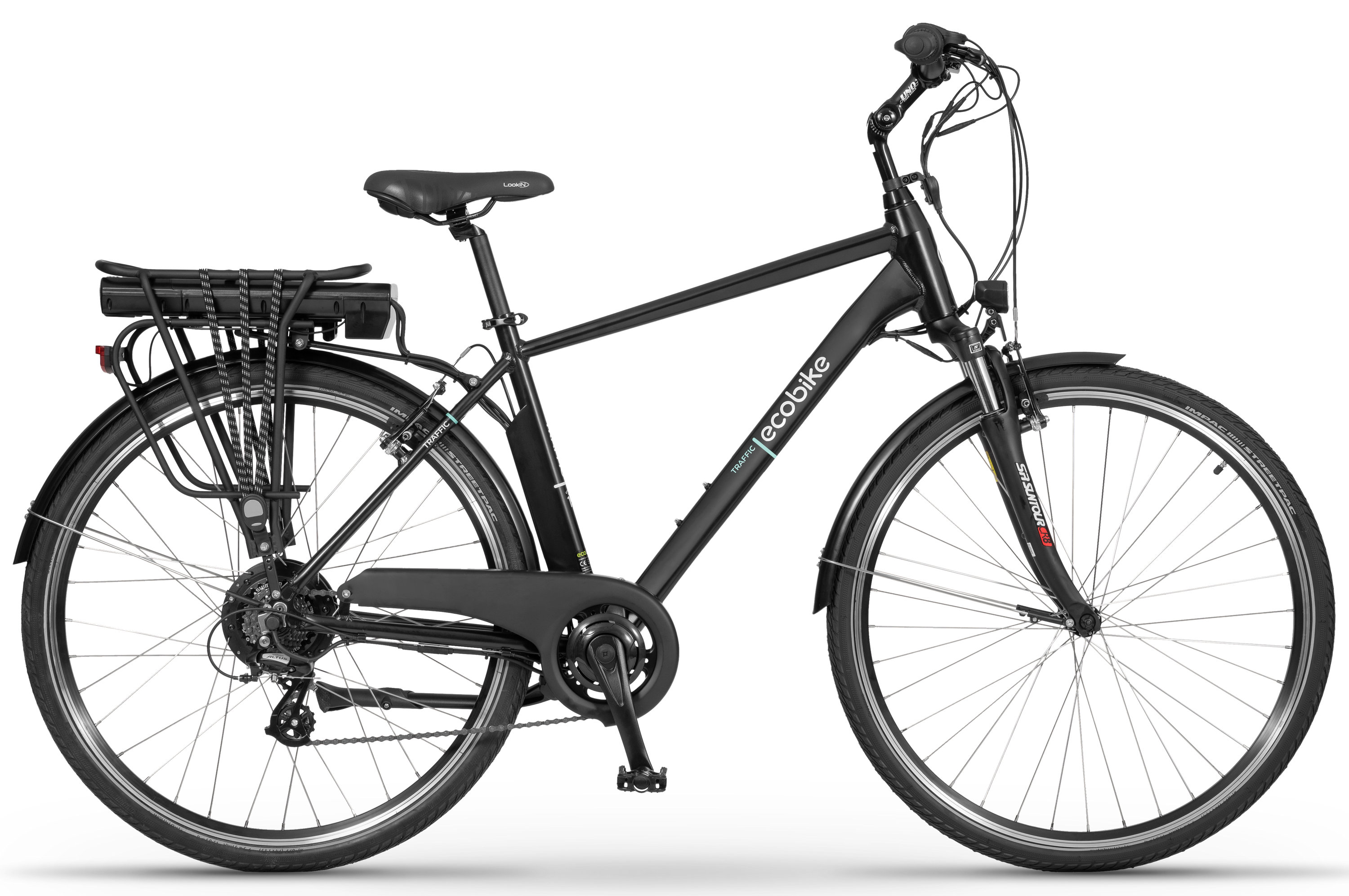 In addition, the bike will meet expectations regarding comfort and safety. Traffic is equipped with complete lighting powered by the main battery, Shimano Altus gears, SunTour CR8V suspension fork, adjustable stem, fenders, and a comfortable Selle Royal saddle.