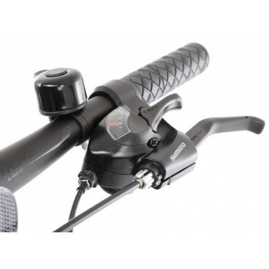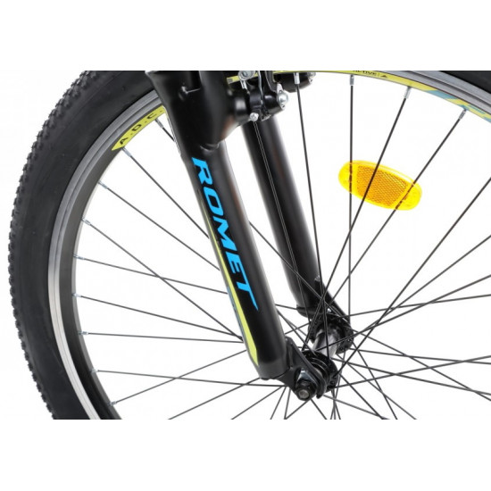 Rāmis: Aluminium 6061Dakša: suspensionĀtrumu daudzums: 21 speedPārslēdzēju rokturi: Shimano ST-EF41 3 speed / Shimano ST-EF41 7 speedPriekšējais pārslēdzējs: Shimano Tourney TY300Aizmugurējais pārslēdzējs: Shimano Tourney TY300DPriekšējie zobratu bloks: 42/34/24T 170 mmBremzes: V-brake Alhonga HJ-811AD7 aluminiumRiepas: 26 x 2.00 (50-559)Aploces: aluminium doublewallRumbas: Front: JoyTech JY-433 steel / Rear: JoyTech JY-434 steelAizmugurējie zobratu bloks: 14-28T 7 speedStūre: Romet aluminium 600 mm 15' FOVStūres iznesums: Romet aluminium 60/90 mmSēdekļa turētājs: aluminium 27,2 mm 300 mmSēdeklis: RometPedāļi: FP-804Svars: 13,4 kg