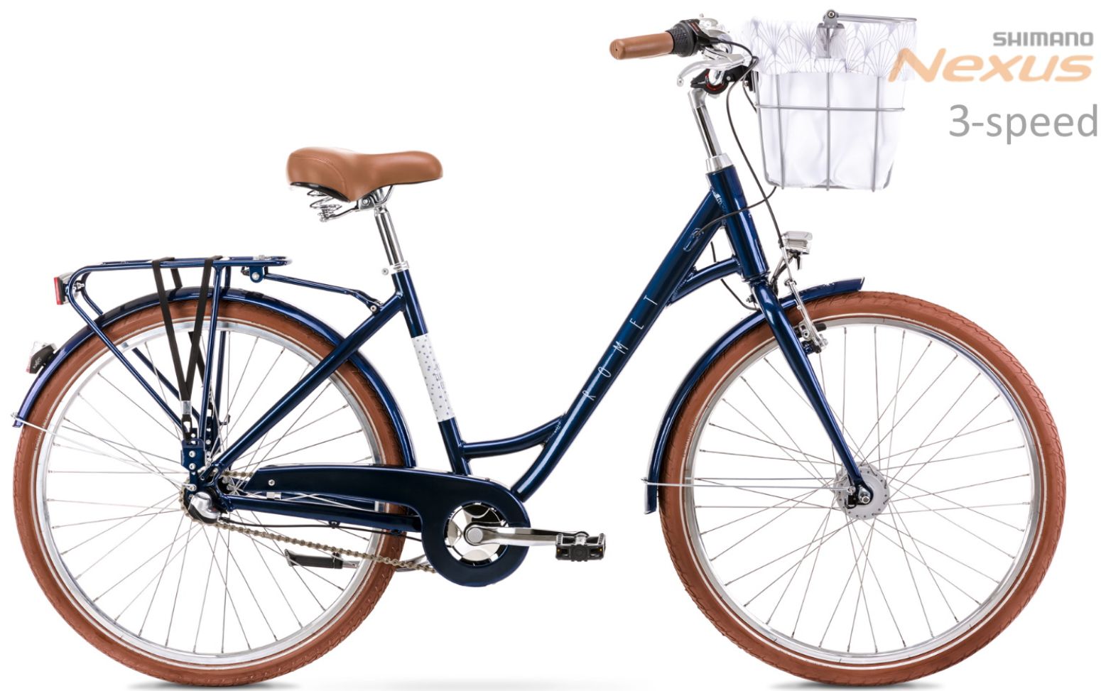 Rāmis: Aluminium 6061Dakša: steelĀtrumu daudzums: 3 speedPārslēdzēju rokturi: Shimano Nexus 3 speedAizmugurējais pārslēdzējs: Shimano Nexus 3 speedPriekšējie zobratu bloks: Cyclone CTL-3-101 38T 170 mmBremzes: Front: V-brake Promax TX-117 aluminium / Rear: Coaster brake (brakes when pedalling backwards)Riepas: 28 x 1.75 (47-622)Aploces: aluminium doublewallRumbas: Front: Shimano Dynamo DH-3N31 / Rear: Shimano Nexus 3 speedAizmugurējie zobratu bloks: 18TStūre: steelStūres iznesums: steelSēdekļa turētājs: steel 27,2 mm 300 mmSēdeklis: Romet CityPedāļi: FP-804Aksesuāri: Light set: LED 1 wat 36 lux / 3-LED, Carrier, Mudguards, ChainguardSvars: 16,5 kg