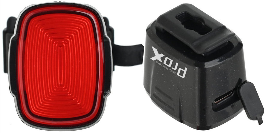 - Rear bicycle lamp, charged via USB-C