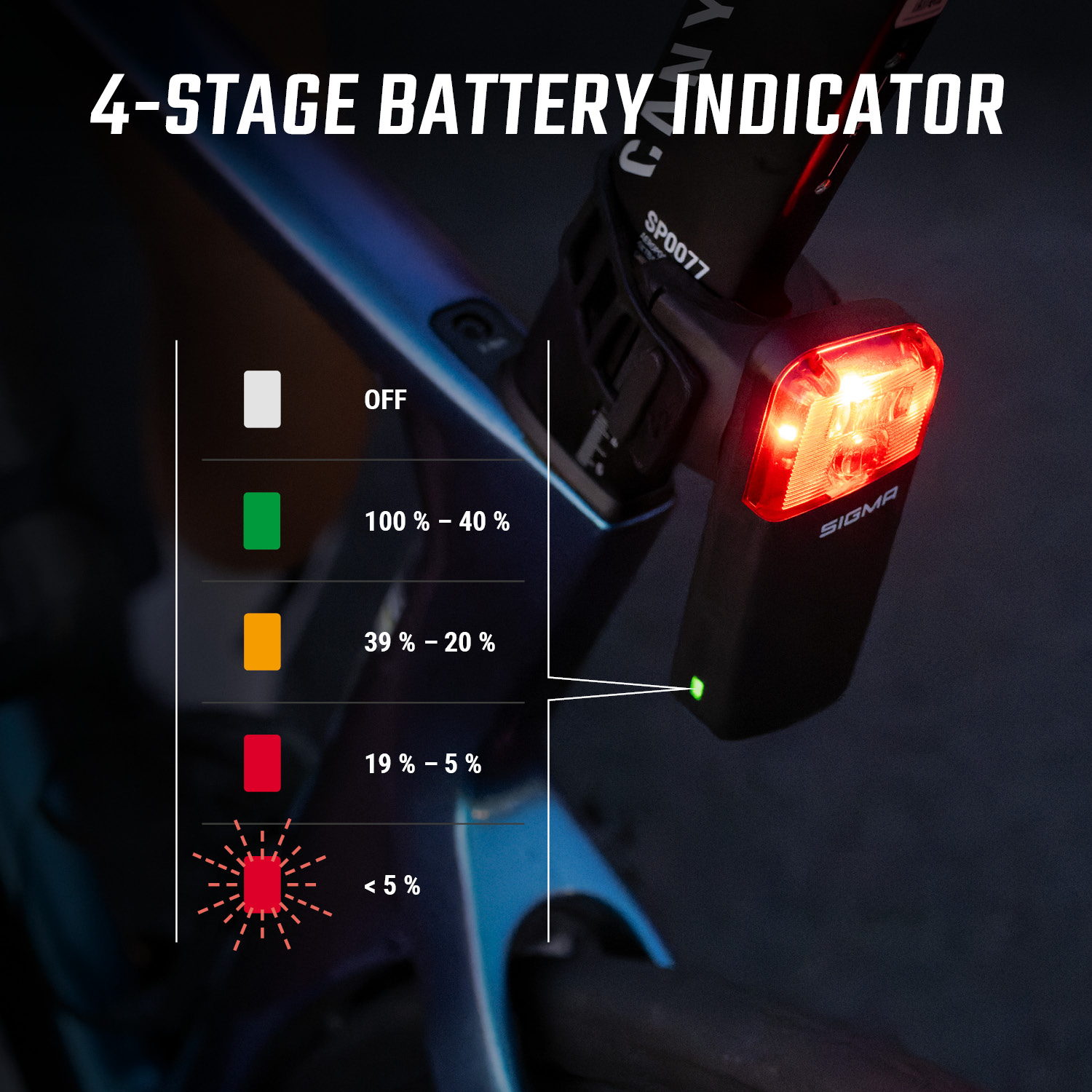 - SIGMA RIDE app compatible: Firmware updates, Status information
