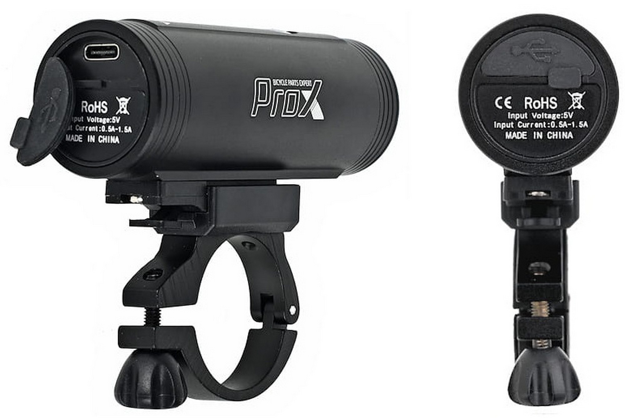 - Plastic bracket for quick mounting on the handlebar included 360 degree adjustable, USB charging cable