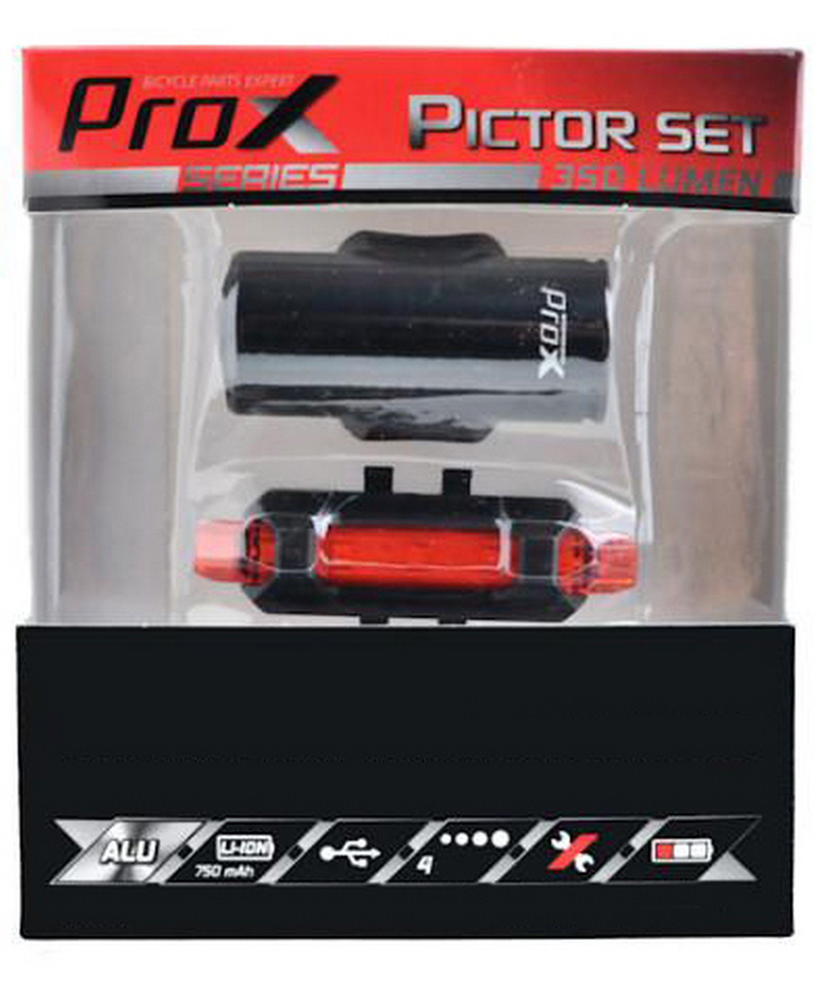 Apraksts - Apgaismojums komplekts ProX Pictor CREE 350Lm + 10Lm USB red