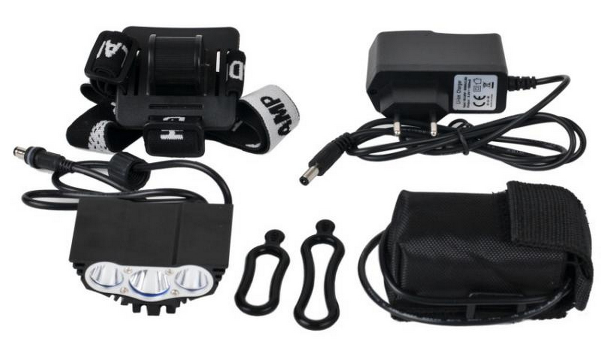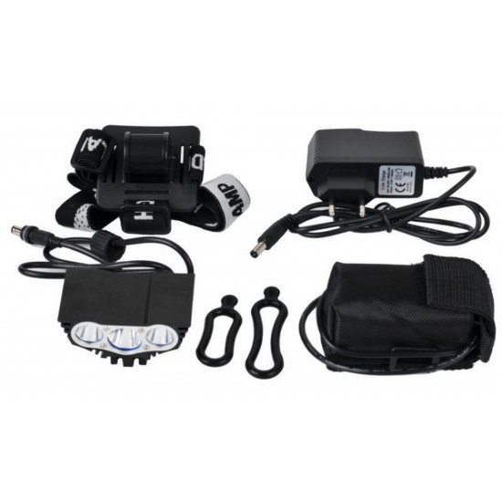 Powerful bike front lamp, equipped with 3 CREE LEDs with lithium battery, handlebar and helmet mounting brackets.