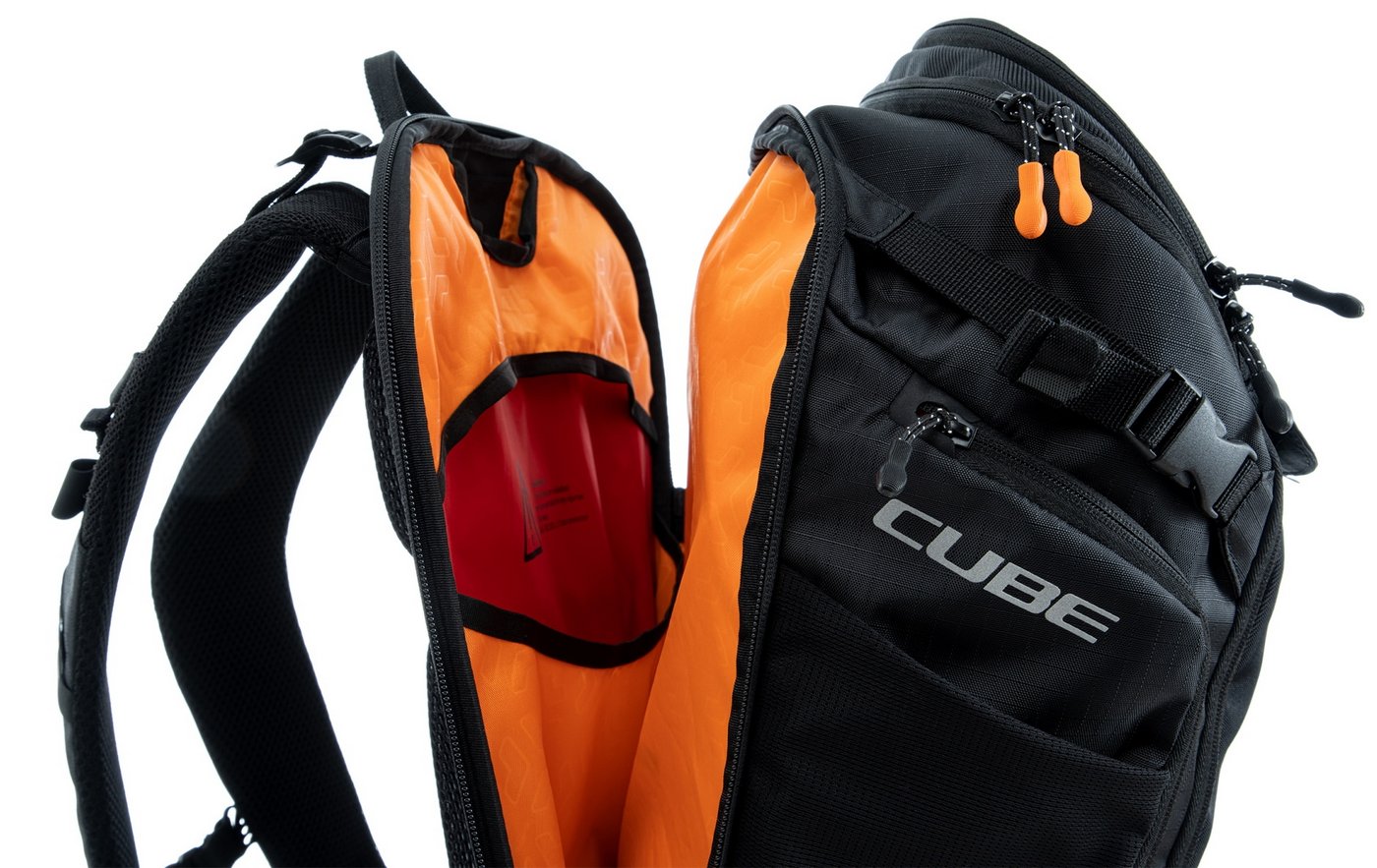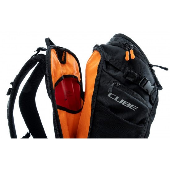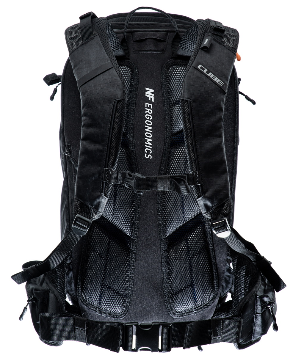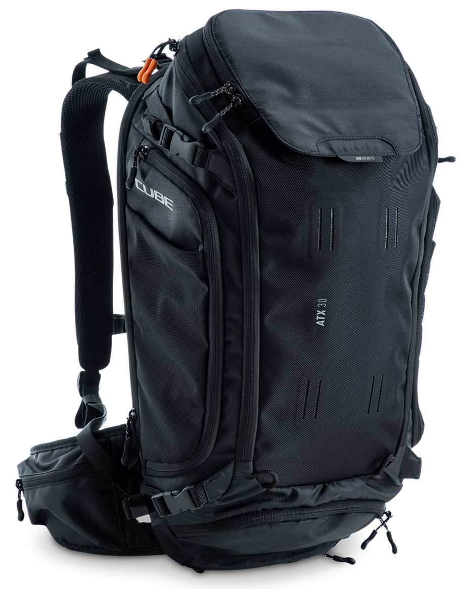 From alpine crossings to multi-day adventures, the CUBE ATX 30 has masses of packing space and is the biggest backpack in our collection. An optimal fit is courtesy of CUBE's own Natural Fit back system developed in-house and padded hip straps. Weight is distributed comfortably, while good padding and ventilation keep your back feeling fresh. The versatile MOLLE system also makes it easy to securely attach the CUBE GEAR BAG 1 using touch fasteners for some practical extra storage. And side compression straps mean you can squash down the volume on the days where you're carrying less gear. Well-designed compartments, two tool compartments and a side pocket for your smartphone keep the most important items within easy grasp. And with a hydration pack compartment and rain cover thrown in, it genuinely has it all!