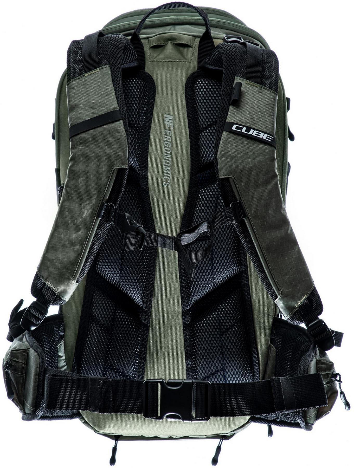 From alpine crossings to multi-day adventures, the cube atx 30 has masses of packing space and is the biggest backpack in our collection. An optimal fit is courtesy of cube's own nf ergonomics back system developed in-house and padded hip straps. Weight is distributed comfortably, while good padding and ventilation keep your back feeling fresh. The versatile molle system also makes it easy to securely attach the cube accessory bag 1 or cube accessory bag 2 using touch fasteners for some practical extra storage. And side compression straps mean you can squash down the volume on the days where you're carrying less gear. Well-designed compartments, two tool compartments and a side pocket for your smartphone keep the most important items within easy grasp. And with a hydration pack compartment and rain cover thrown in, it genuinely has it all!