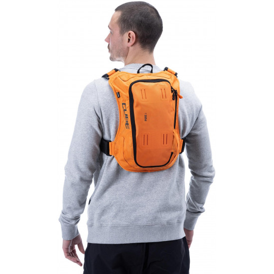 Small and smart: the pure 4 has everything you need from a backpack and nothing you don't. We pared it back to the essentials you'll need on shorter tours without having to carry extra weight. It's hydration system-compatible with outlets on both sides for the drinking tube, while mesh pockets in the main compartment keep everything neatly organised and are great for stashing bars, multi-tools and other small items. A side zip pocket keeps your smartphone or other essentials safe and within easy reach. We also incorporated our x-shape shoulder system that fastens across the chest, so the backpack stays comfortable and stable without cutting into your stomach, leaving you to breathe freely while you sweat the climbs or rail the trails. The backpack also features the versatile molle system, so it's easy to securely attach the small cube accessory bag 1 or cube accessory bag 2 using the integrated touch fasteners for practical extra storage.