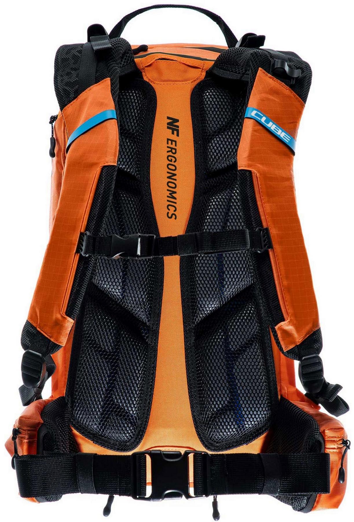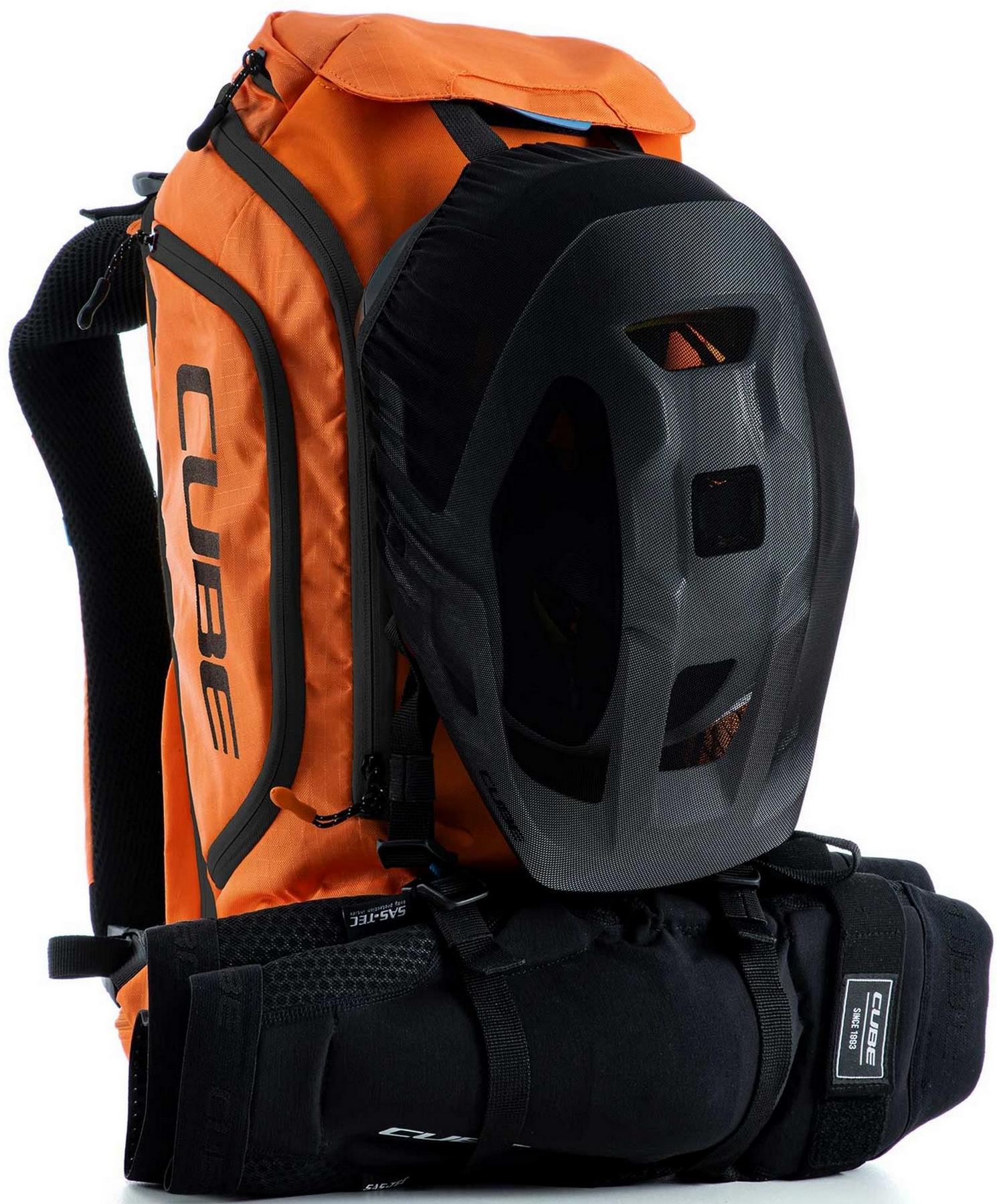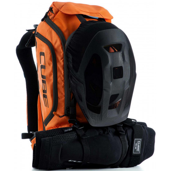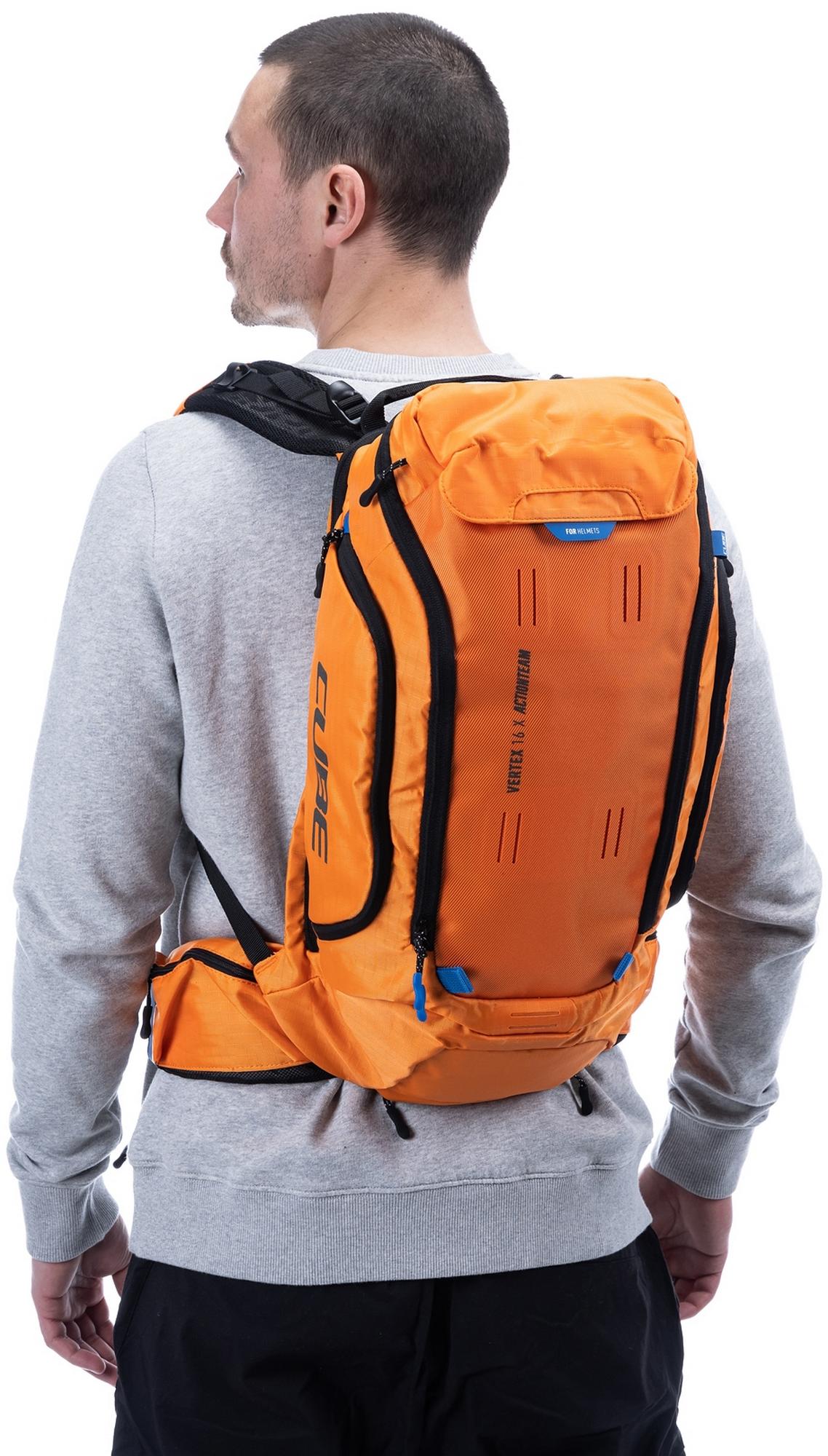 Enduro fans listen up! The vertex 16 x actionteam is our high-class backpack that's absolutely rammed full of practical features. An optimal fit courtesy of ergonomic shoulder straps, hip straps and cube's own nf ergonomics back system developed in-house adds up to a backpack that stays put no matter how hard you shred. We also added padding and ventilation so your back stays comfortable and fresh. The vertex 16 includes a sas-tec lb-l protector weighing in at a feather-light 150 g. We also included a protector strap, helmet carrier, goggle compartment and rain cover for maximum practicality. Internal compartments, a hip pocket, a smartphone pocket and two side tool compartments keep everything organised while you session the trails. And we also made it hydration system-compatible because that's how we roll! What's more: instead of a standard black lining, we used a contrasting colour to make it easier and faster to find what you need.