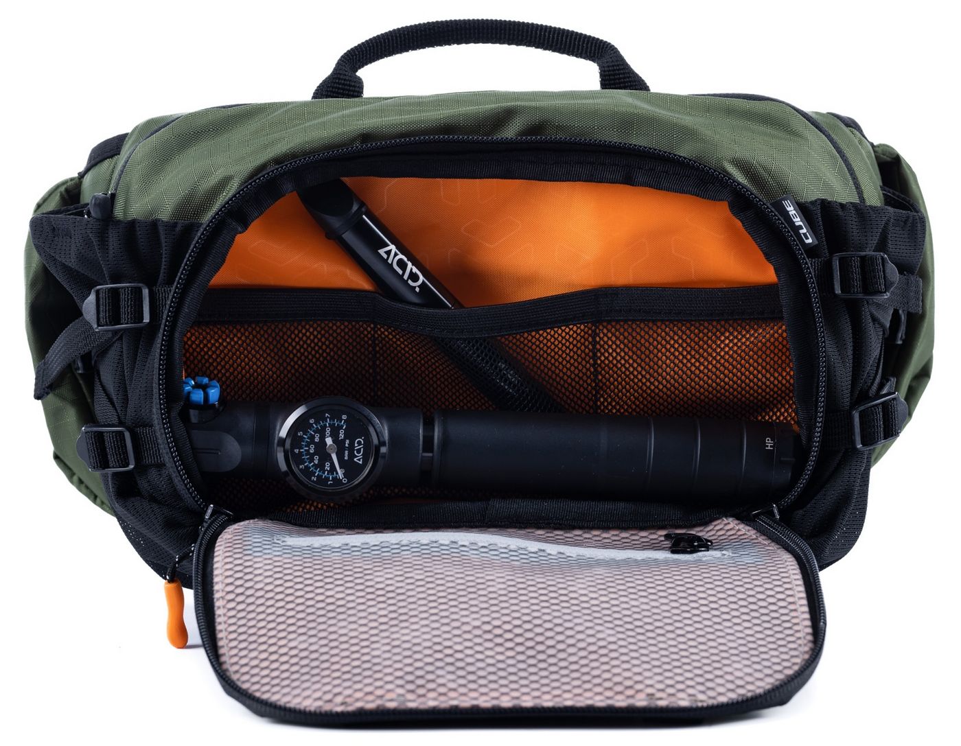 Bum bag or fanny pack whatever you call it, when it's as clever as the VERTEX 3, it might solve all of your space problems in one. With its wide, padded hip belt and ventilated back system, this CUBE Hip Bag is perfect for safely transporting your ride essentials in comfort. It packs plenty of practical features into a small space: front pockets with compartments, mini pockets on the belt, elasticated side pockets... What's more: it's hydration system-compatible, too.