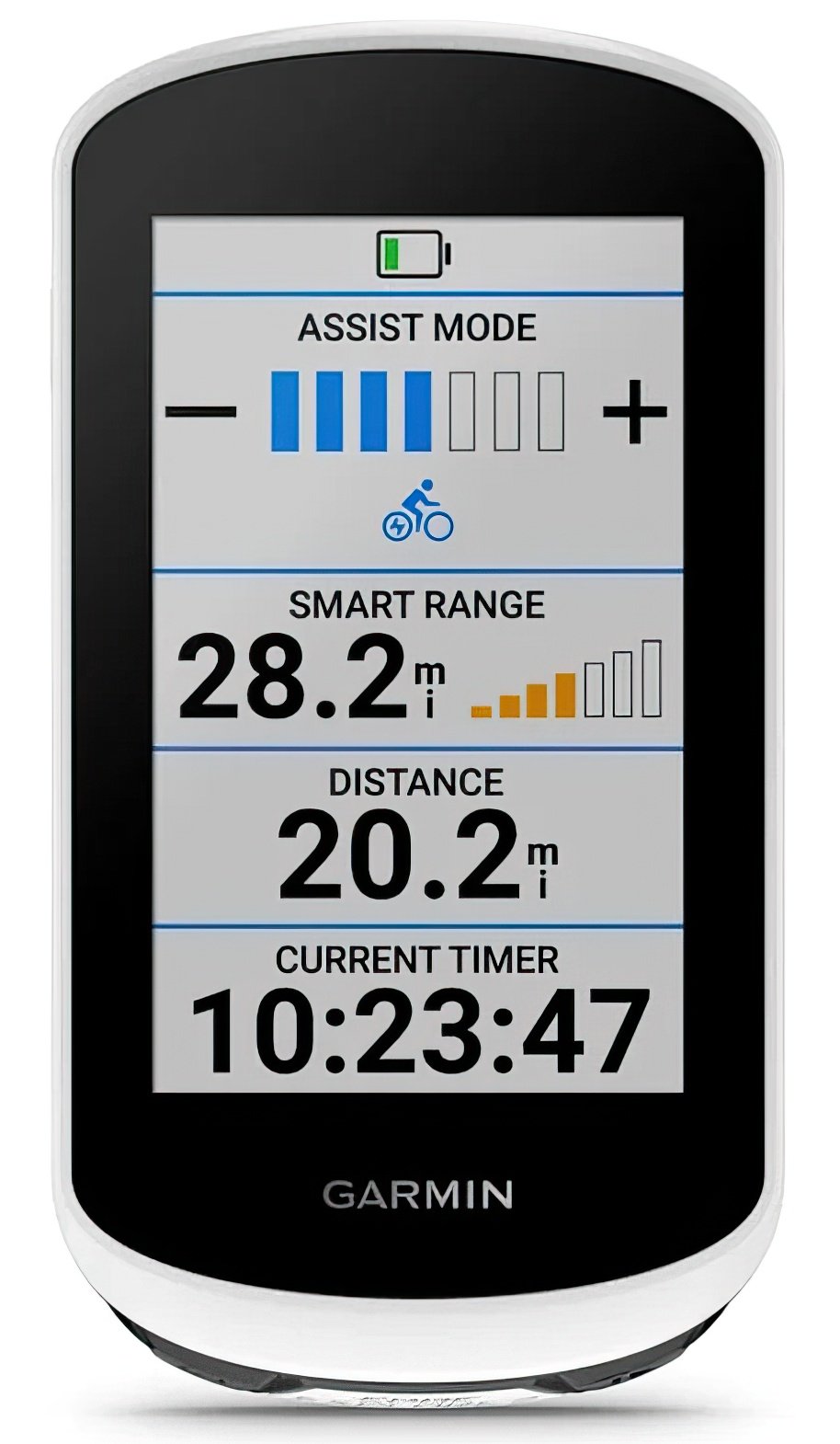 - EBIKE COMPATIBILITY If you have an eBike thats compatible3 with ANT+ technology, you can see a dedicated eBike status screen showing data fields, including battery life and more. Even get smart routing and range alerts based on battery status, assist level and your planned course. li>Specification: