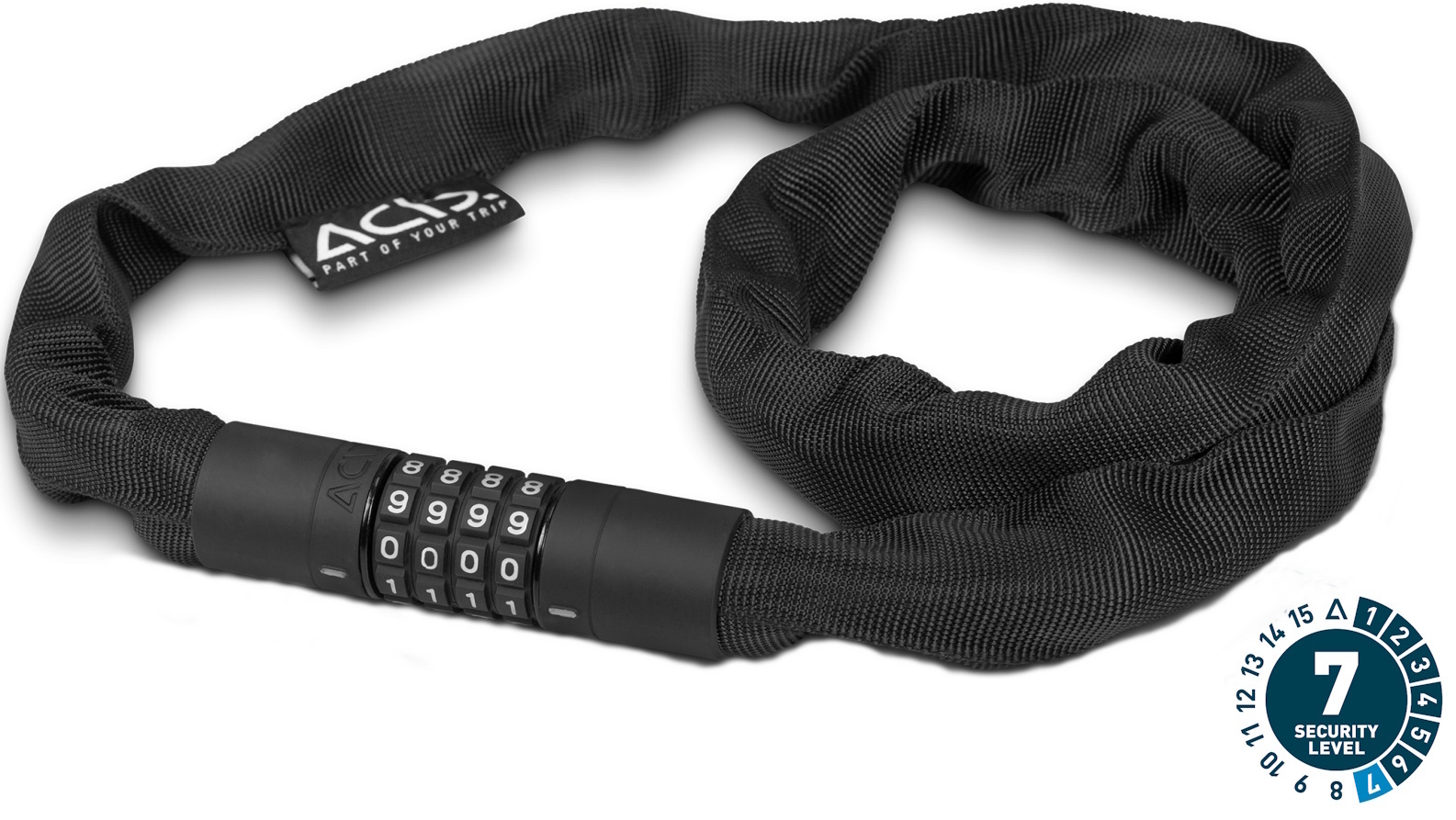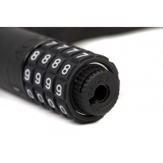 The extra-secure chain lock in our corvid c range is virtually noiseless yet incredibly sturdy with a tear-resistant, hard-wearing textile sleeve. A rubberised surface prevents corrosion and protects your frame against scratches. Grip+ technology on the lock body and combination wheels ensures maximum grip. Personalisable combination.
