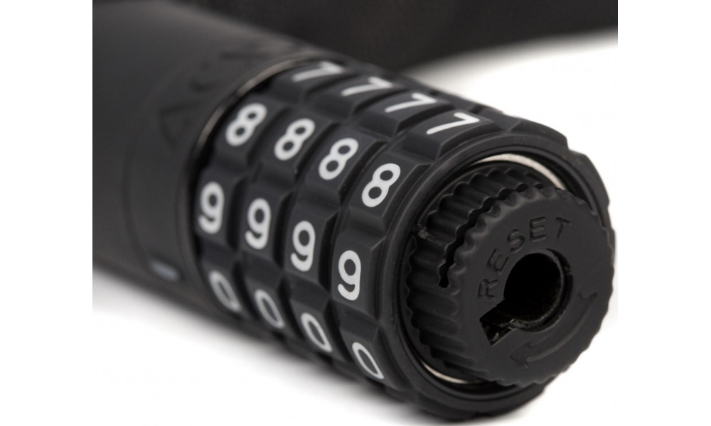 The extra-secure chain lock in our corvid c range is virtually noiseless yet incredibly sturdy with a tear-resistant, hard-wearing textile sleeve. A rubberised surface prevents corrosion and protects your frame against scratches. Grip+ technology on the lock body and combination wheels ensures maximum grip. Personalisable combination.