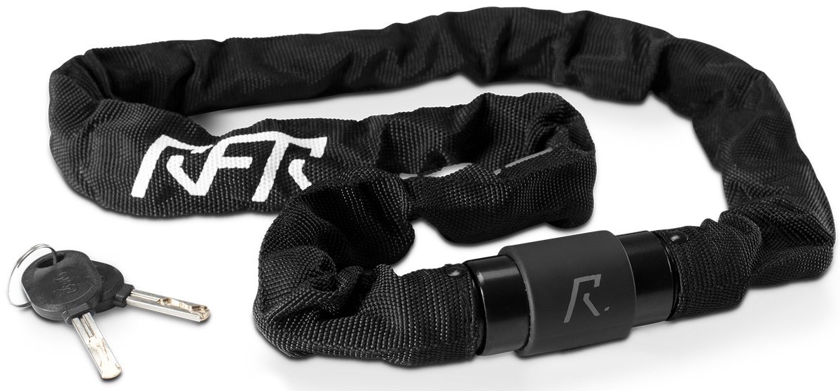 This high-security chain lock comes with a super strong 1,000 mm chain and a water- and dust-resistant lock cylinder. The textile and synthetic sleeve prevents corrosion and protects the frame against scratches. Includes two keys.