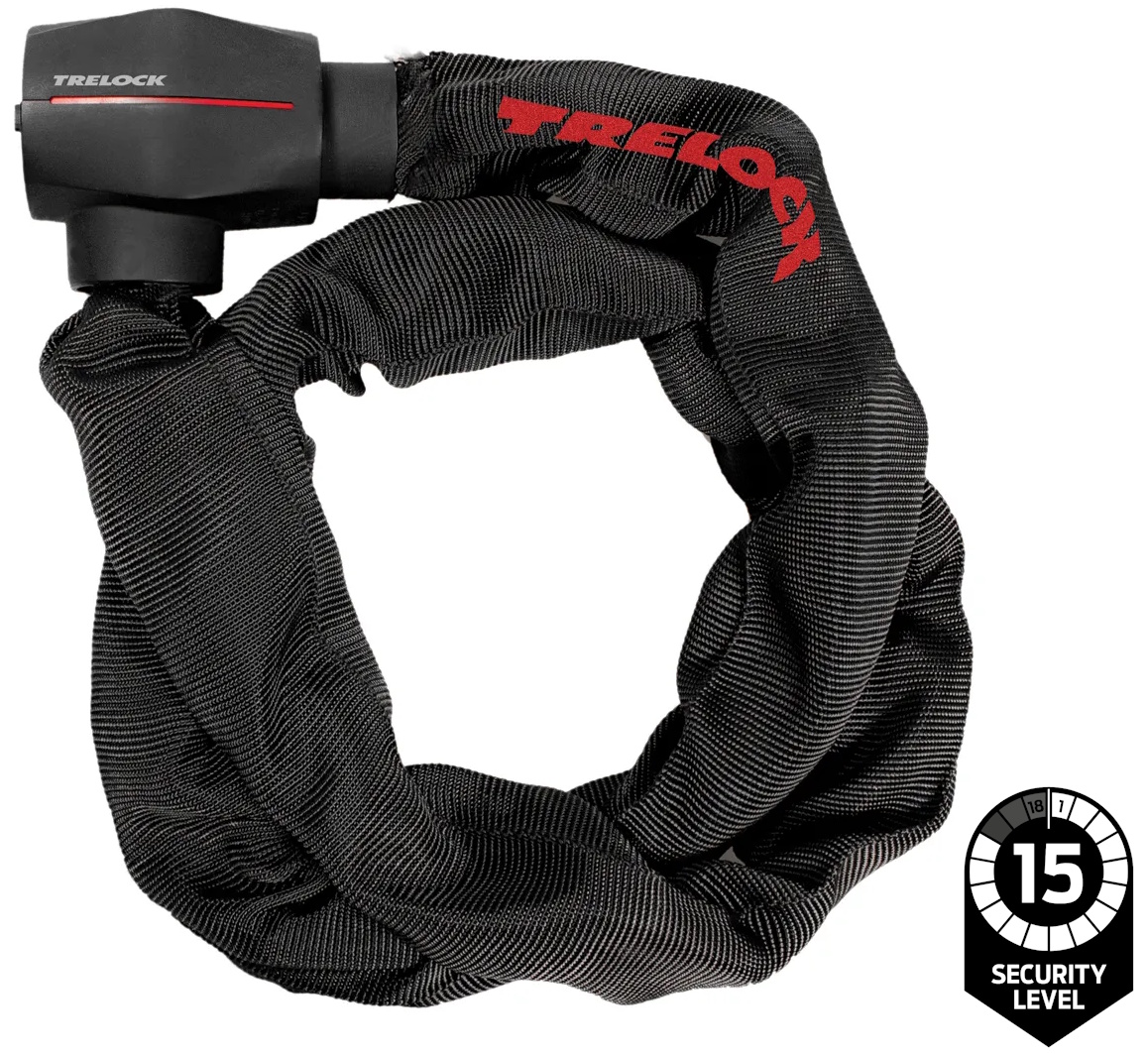 TRELOCK Security Security and quality. The number of bicycle thefts is on the increase and only every tenth bicycle is eventually returned to its original owner. However, cyclists investing in a good lock reduce the risk of their bicycle being stolen. With its bike lock solutions, TRELOCK offers customers more than just security for their bicycles. Innovative additional solutions provide the cyclist with increased security and convenience. Modern cylinder technologies and high-quality materials produce reliable bicycle locks and as an added plus also reduce the weight of the lock. The BC 580 offers the perfect combination of flexibility and high security: with a length of 110 cm it offers sufficient locking range to lock the bike or e-bike to a stationary object, the 9 mm thick chain links provide high theft protection.