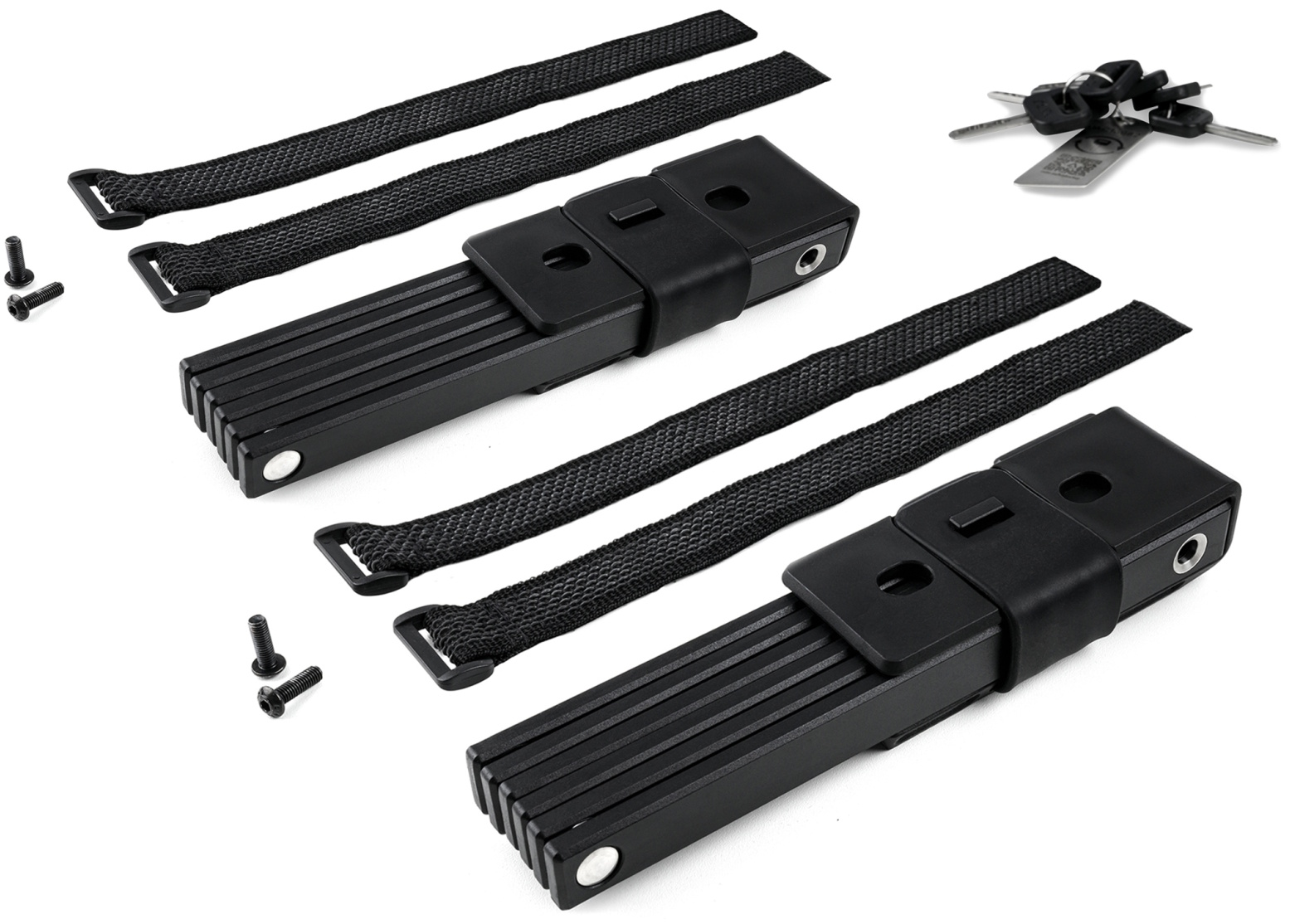 The rigid 100 pure twin pack comes with two high-security folding locks, two brackets and six keys. Constructed from high-performance, hardened stainless steel and certified as meeting the rigorous art1 theft-prevention standard. A strong spring-loaded bolt makes the locks incredibly easy to use and close securely. The slim, elegant design doesn't just look good it also shaves weight from the 100 cm folding lock to make it practical. Fits to virtually any bike. A low-profile side-opening bracket is simple to screw on in a range of positions or attach using the anti-slip touch fastener. Premium-quality materials and precise workmanship will fend off the most determined theft attempts and stand up to extreme weather conditions. Perfect protection, wherever you are.