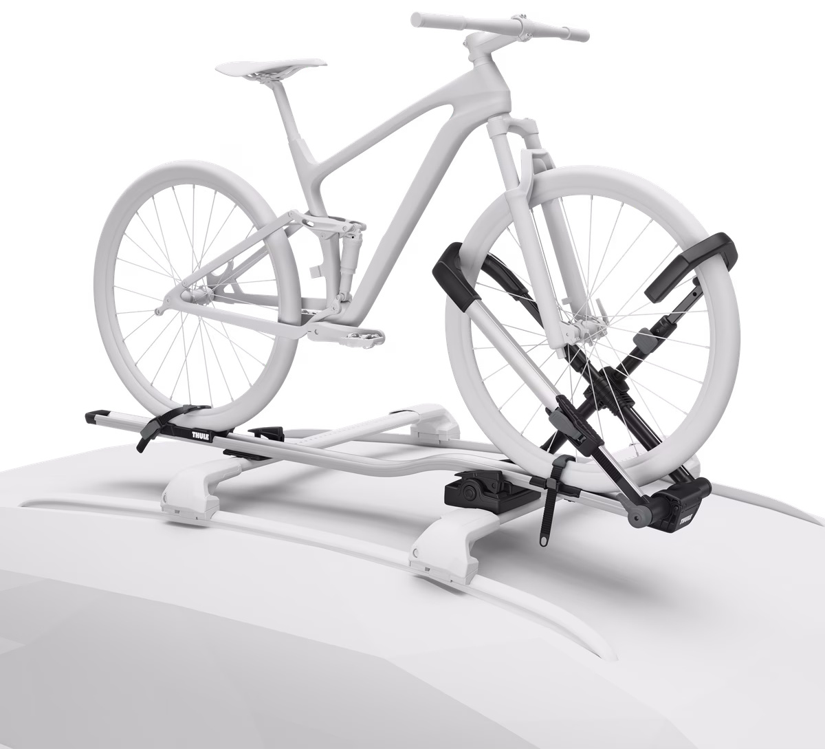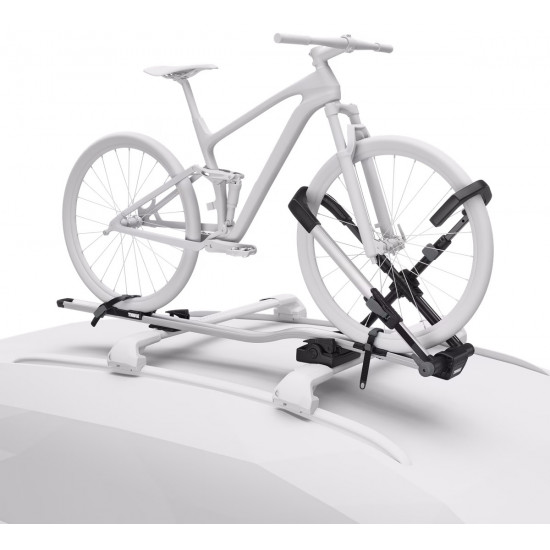 Universal upright bike rack with no frame contact, for fast and secure mounting and maximum frame protection.No bike frame contact is made as the hook securely grabs the front wheelSuitable for bikes with carbon framesVersatile design accommodates bikes with non-traditional frame designs, rear suspension, and bottle cagesSimple interface for switching carrier from one side of your car to the otherRatcheting wheel strap quickly secures back wheel to trayFits most 2029 wheel bicycles with tires up to 3" wide (up to 5 with Thule UpRide Fatbike Adapter, sold separately)Maximum bike weight up to 20 kg.Locks the bike to the bike rack and the bike rack to the roof racks (locks included)IMPORTANT: Please check compatibility before buying - https://www.thule.com/en-gb/gb/buyers-guideLoad capacity: 20 kgSize: 163 x 31.5 x 10.5 cmWeight: 7.7 kgFits round frame dimensions: AllFits maximum oval frame dimensions: AllCarbon frame compatibleFits roof racks with 20x20 mm T-tracksFits roof racks with 24x30 mm T-tracks (Adapter/s required: Thule T-track Adapter 889-1)Fits Thule SquareBar (Adapter/s required: Thule Bike Rack Around-the-Bar Adapter)One Key System compatible Red Dot Design Award for Thule ProductAccessories for Thule UpRide (not included, can be ordered separately):Thule UpRide Fatbike AdapterThule T-track Adapter 889-1Thule Bike Rack Around-the-BarThule Wheel Strap LocksThule Cable LockThule One-Key System 4-pack