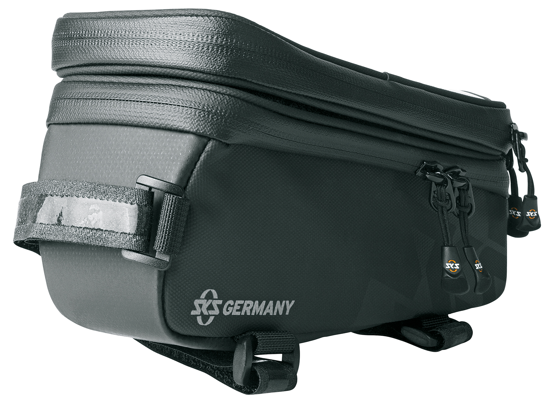 Robust and durable. Durable material made from rubberised, water-repellent fabric make the EXPLORER bicycle bag a must for every mountain biker. Reflective elements like the SKS logo add safety. Besides providing plenty of space for tools, replacement tubes, and personal items, this bag features a laminated zipper with ergonomic easy-zip, secure inside pocket, and orange-coloured lining to make finding items easier.