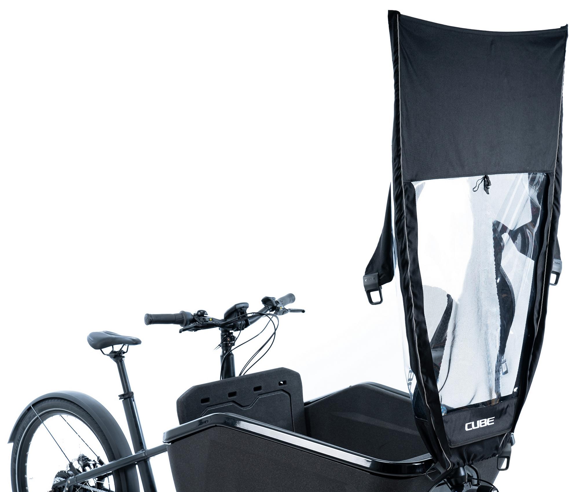 Real cyclists aren't put off by bad weather especially when they've got the temptation of the cube cargo! Keep cargo loads and small passengers dry with our water-resistant rain cover. The fly screen keeps out the creepy crawlies and the pvc window lets light in (both roll-up). Includes functional and sturdy metal screw clips and fiberglass rods with connectors.