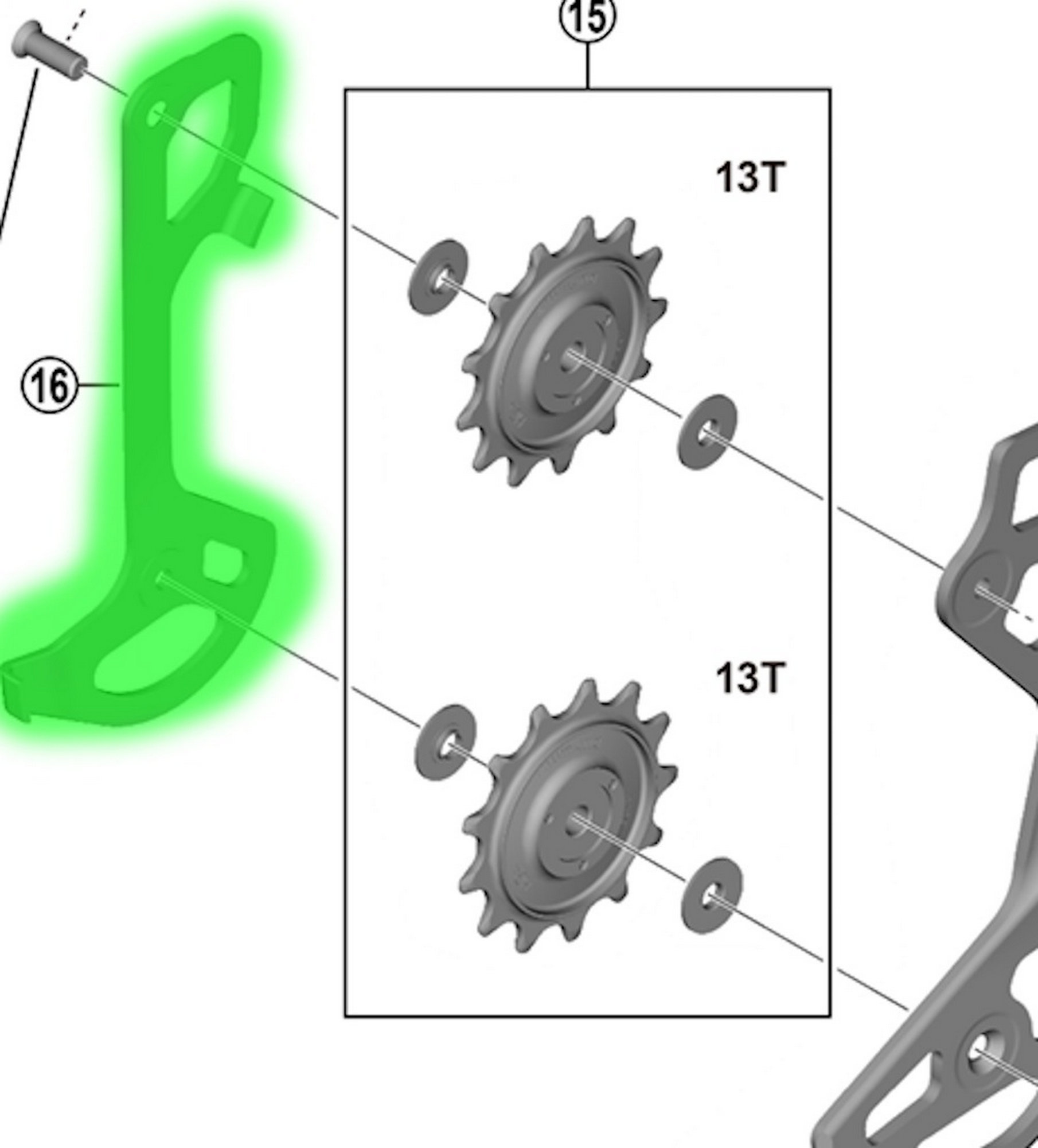 Shimano chain guide plate inner SGS for XTR DI2 RD-M9250 rear derailleur.