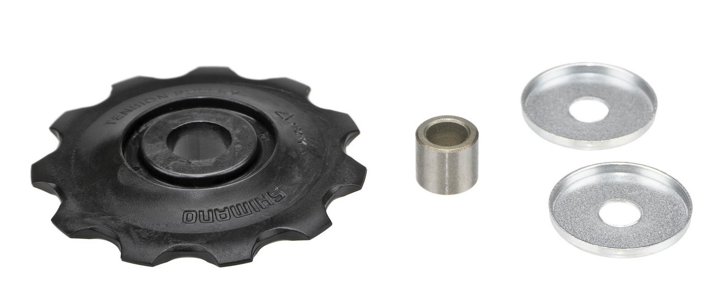 Shimano jockey wheels for Tiagra RD-M4700 rear derailleur (10-speed). With 11 teeth. Set consists of guide- and tension pulley.Art. Nr.: Y5RF98070