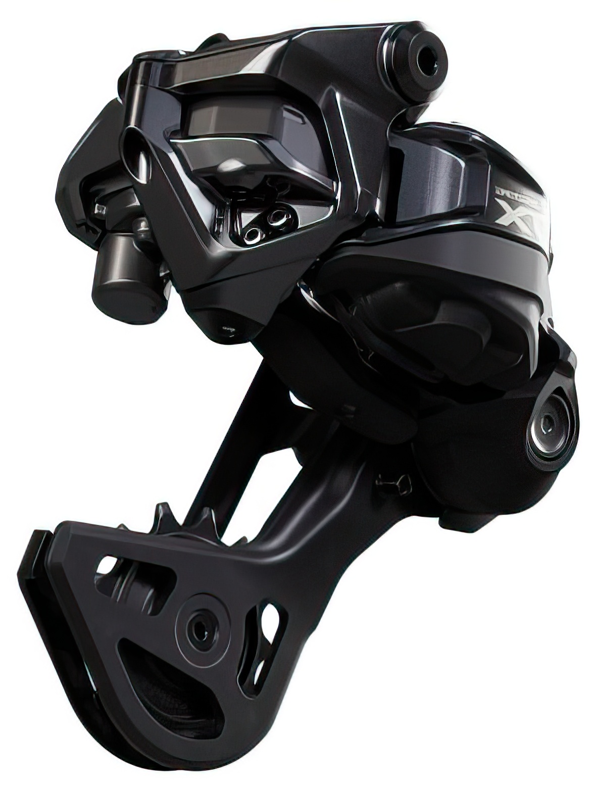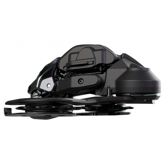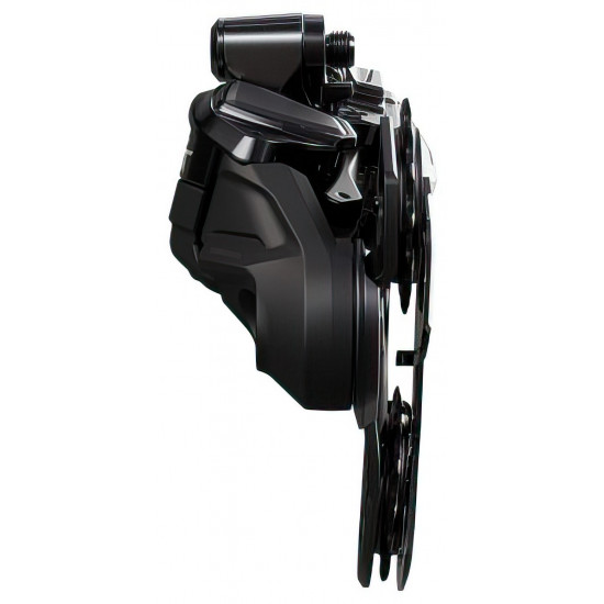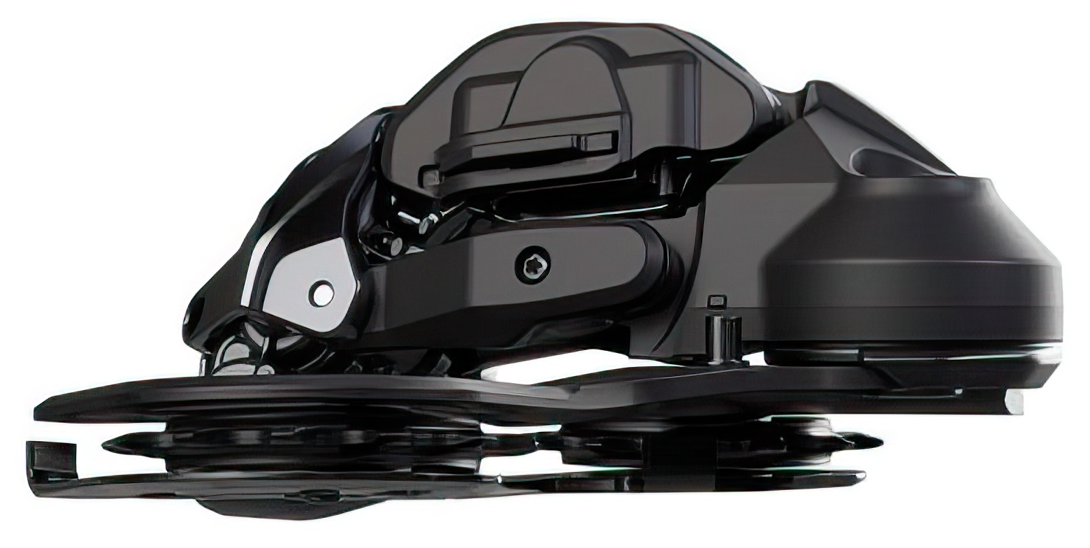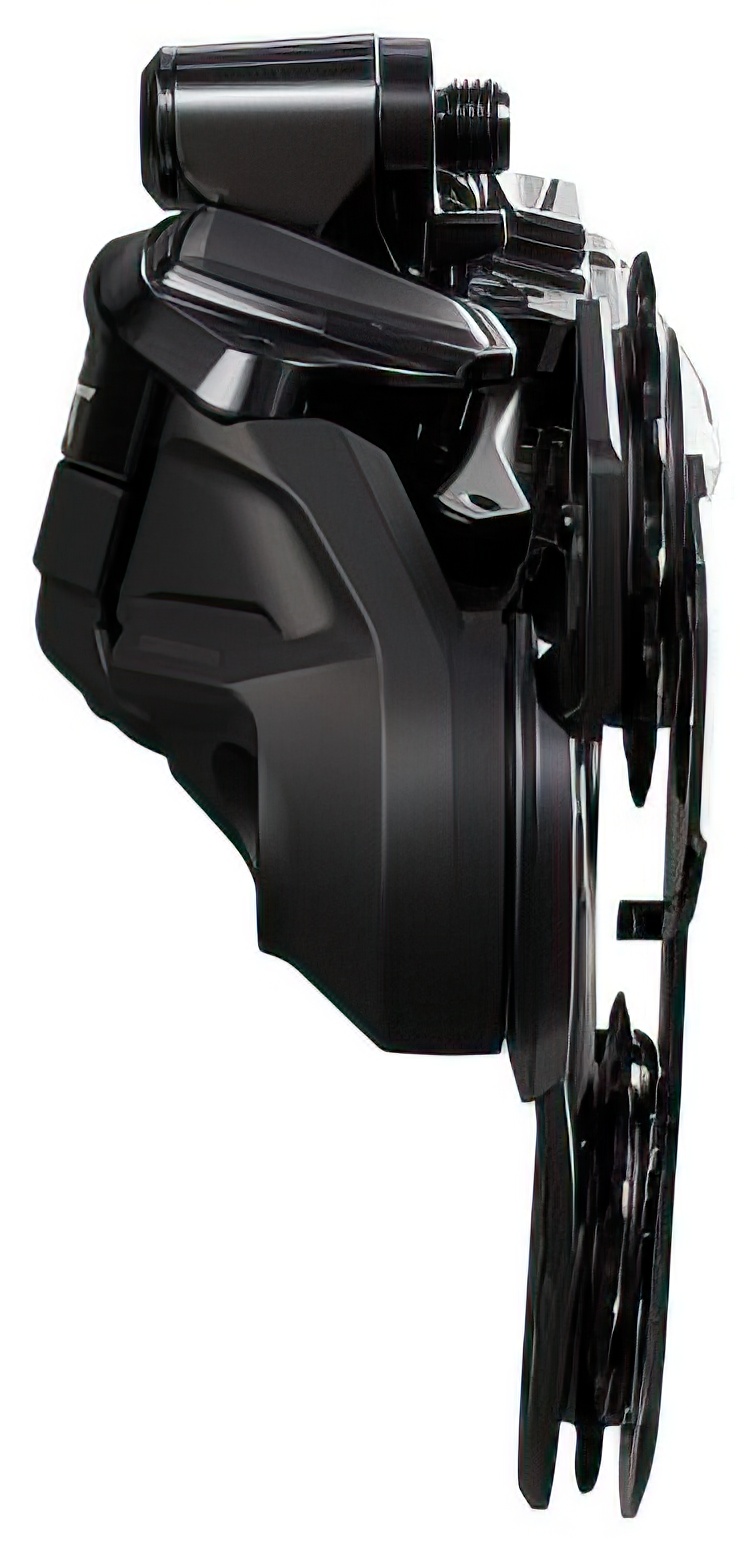 The developers paid particular attention to robustness.The narrow, wedge-shaped design of the rear derailleur, which offers 23 mm more ground clearance, as well as the smooth and resistant surface, significantly minimizes the risk of direct impacts and allows impacting objects to literally slide off. However, if small rocks or a root get in the way, the cage can move inwards thanks to the RD protection function and automatically returns to its previous position. This happens so quickly that the rider is unaware of it and can continue at full speed. In addition, the closed pulleys reliably fend off twigs and branches.