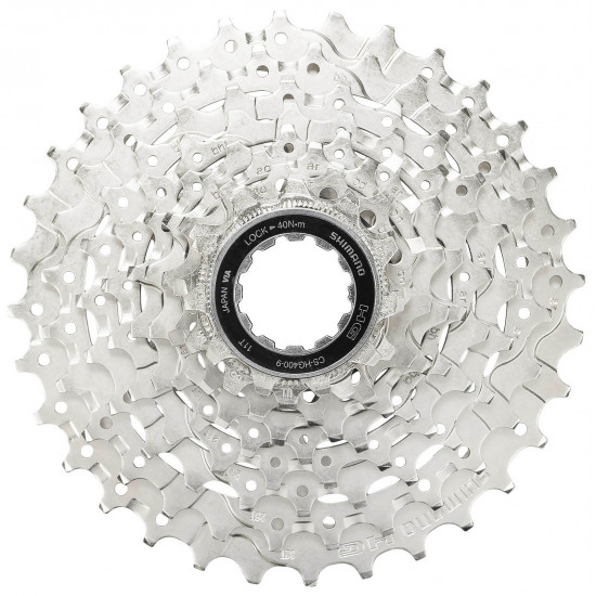 The SHIMANO ALIVIO CS-HG400 9-speed cassette has larger hollow spaces in the sprockets, resulting in a weight saving of approximately 11% when compared to the previous generation cassette - HG50-9 with 11-34 teeth. HG cassettes are compatible with Shimano HG and provide silent and fluent gear shifting. HG sprockets guide the chain quickly and directly to the next sprocket without overdrive.