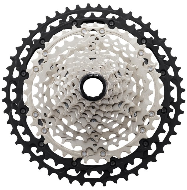 With its BEAM SPIDER construction, the new SHIMANO DEORE XT M8100 12-speed cassette shaves weight while increasing SHIMANO's MTB gearing range another gear. Using SHIMANO's new MICRO SPLINE freehub body and HYPERGLIDE+ tooth profile, these 10-45 and 10-51T cassettes deliver advanced shifting performance.