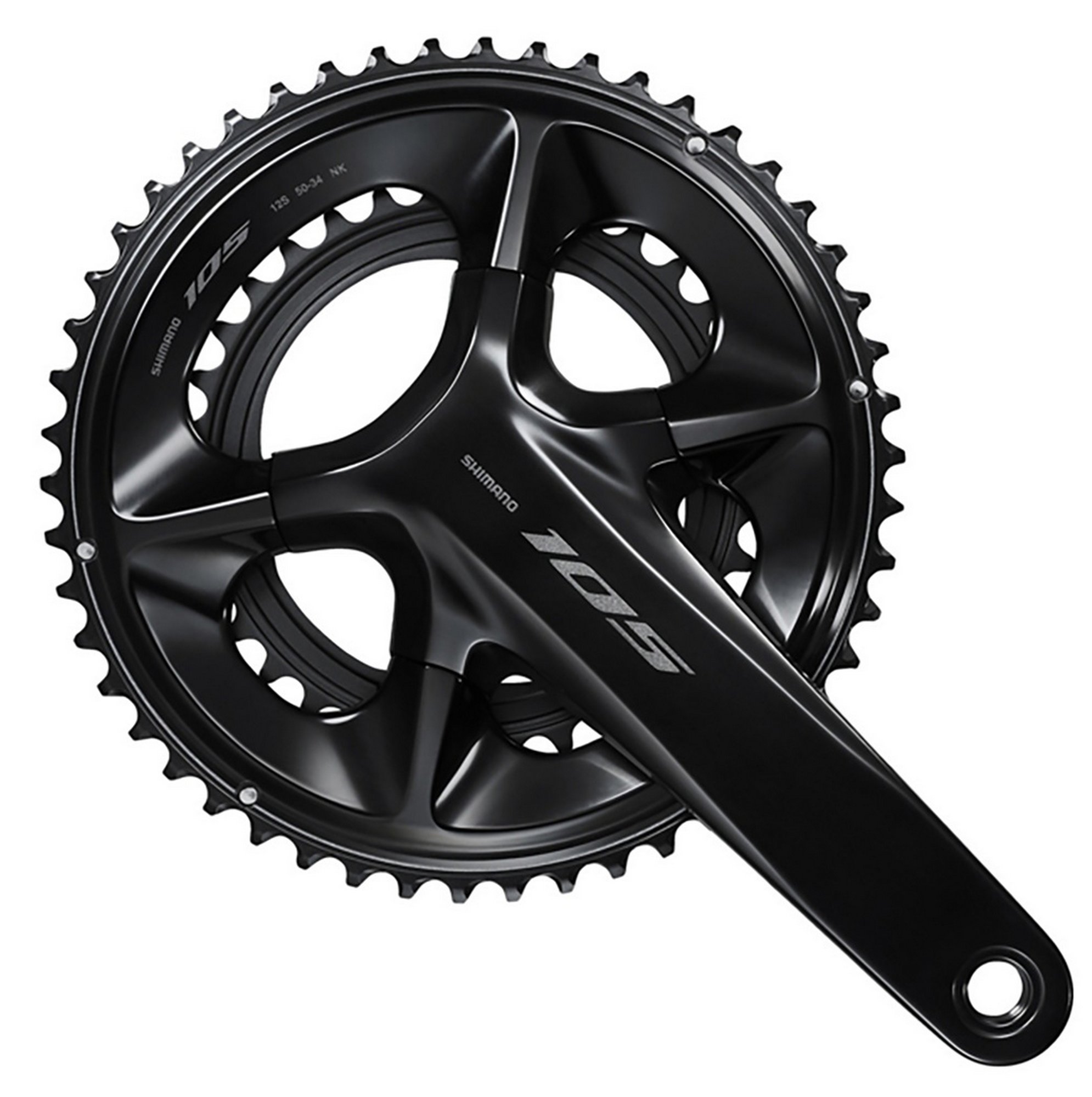 The newly designed crank arms offer an optimized balance between lightweight and efficiency. The crank, formed with hollow aluminum technology, is anodized with a beautiful gloss black anodized finish, giving it a luxurious look. The resin ribs on the back of the chainrings are SHIMANO 105's unique structural design that achieves both thorough weight reduction and crisp shifting performance.