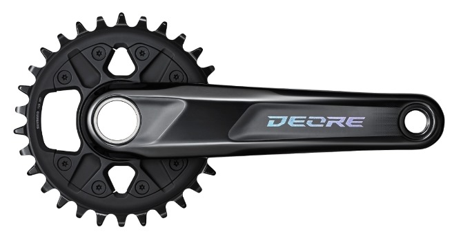 The SHIMANO DEORE FC-M6100-1 crank features an entirely new construction, using direct mount chainrings, a special gear tooth profile for improved chain retention, and a 172 mm Q-factor that is compatible with 142 mm or 148 mm O.L.D. frames.