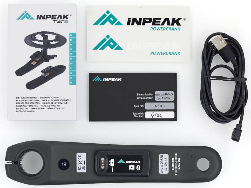 The ANT+ and Bluetooth wireless protocols are responsible for data transfer to compatible bike computers and sports watches as well as to analysis and registration apps on the smartphone. The firmware can be easily updated wirelessly using the INPEAK Manager app. The Powercrank sensor is powered by a coin cell battery, which rarely needs to be replaced due to low energy consumption. The powermeter is manufactured in the EU.