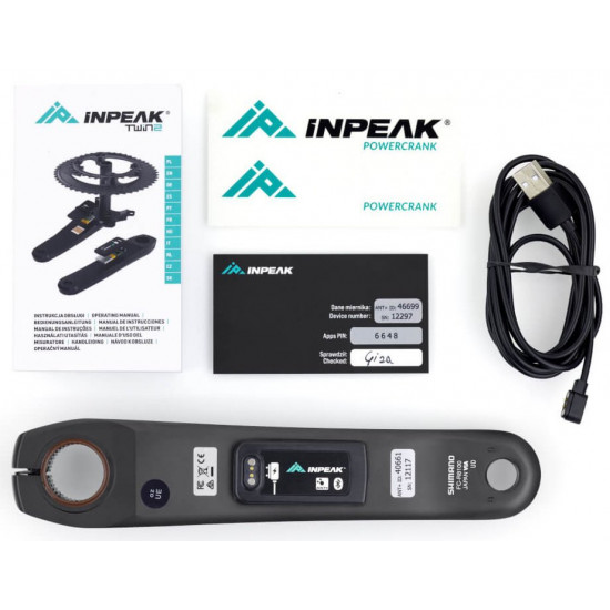 The ANT+ and Bluetooth wireless protocols are responsible for data transfer to compatible bike computers and sports watches as well as to analysis and registration apps on the smartphone. The firmware can be easily updated wirelessly using the INPEAK Manager app. The Powercrank sensor is powered by a coin cell battery, which rarely needs to be replaced due to low energy consumption. The powermeter is manufactured in the EU.
