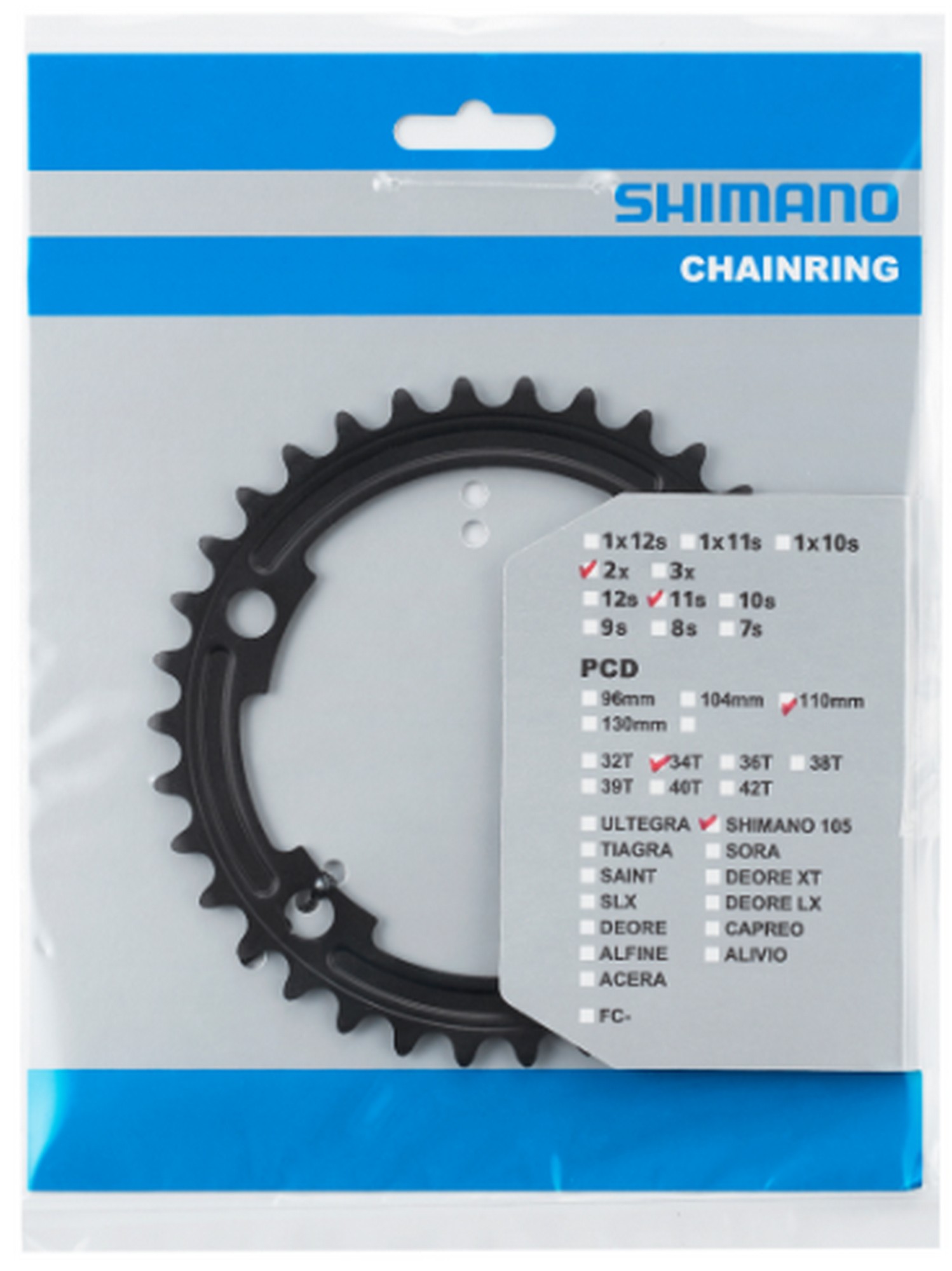 - Chainring tooth: 34T