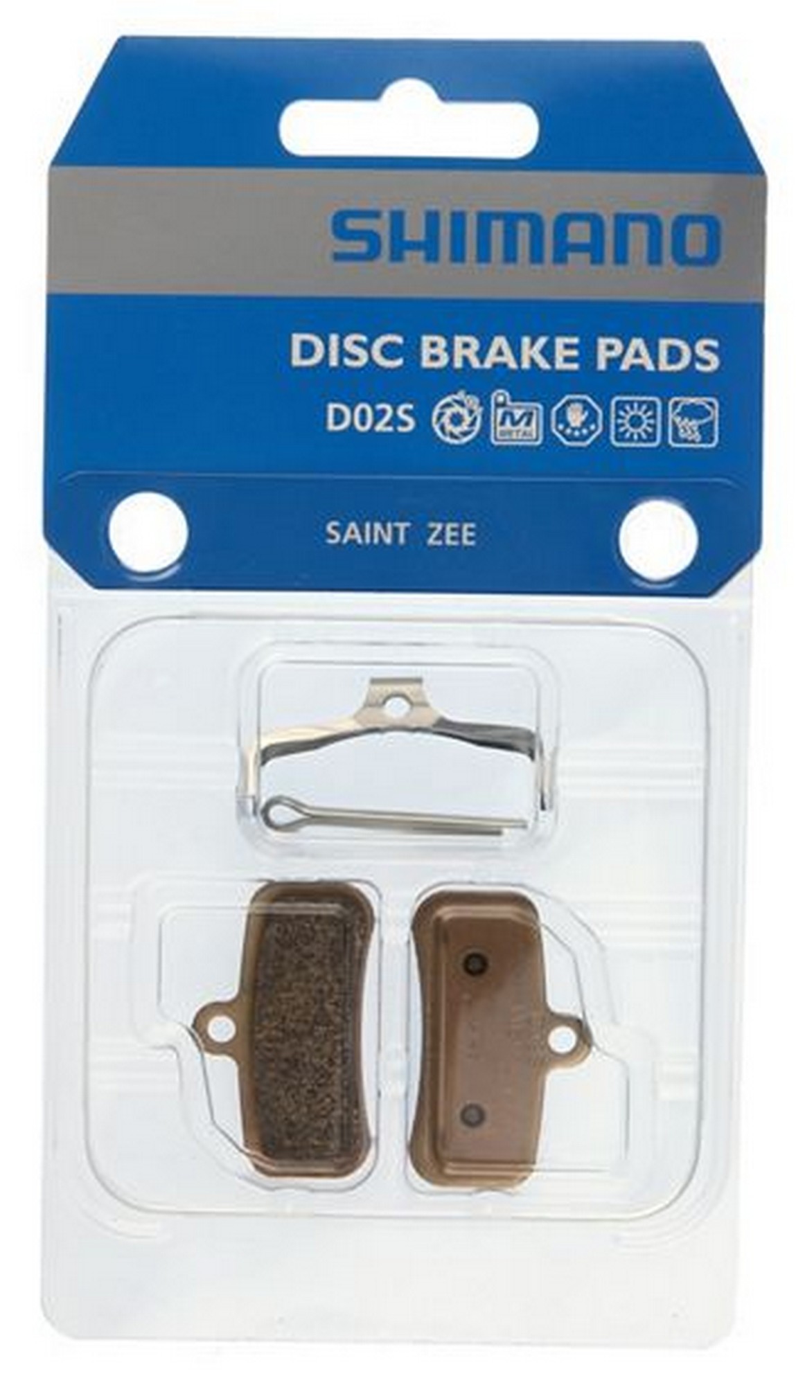 The Shimano D02S metal brake pad for XT, SAINT, ZEE, SLX, DEORE, BR-MT520 and BR-MT420 4-piston disc brake.